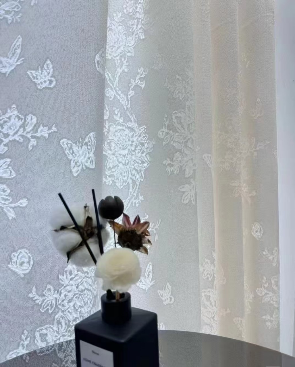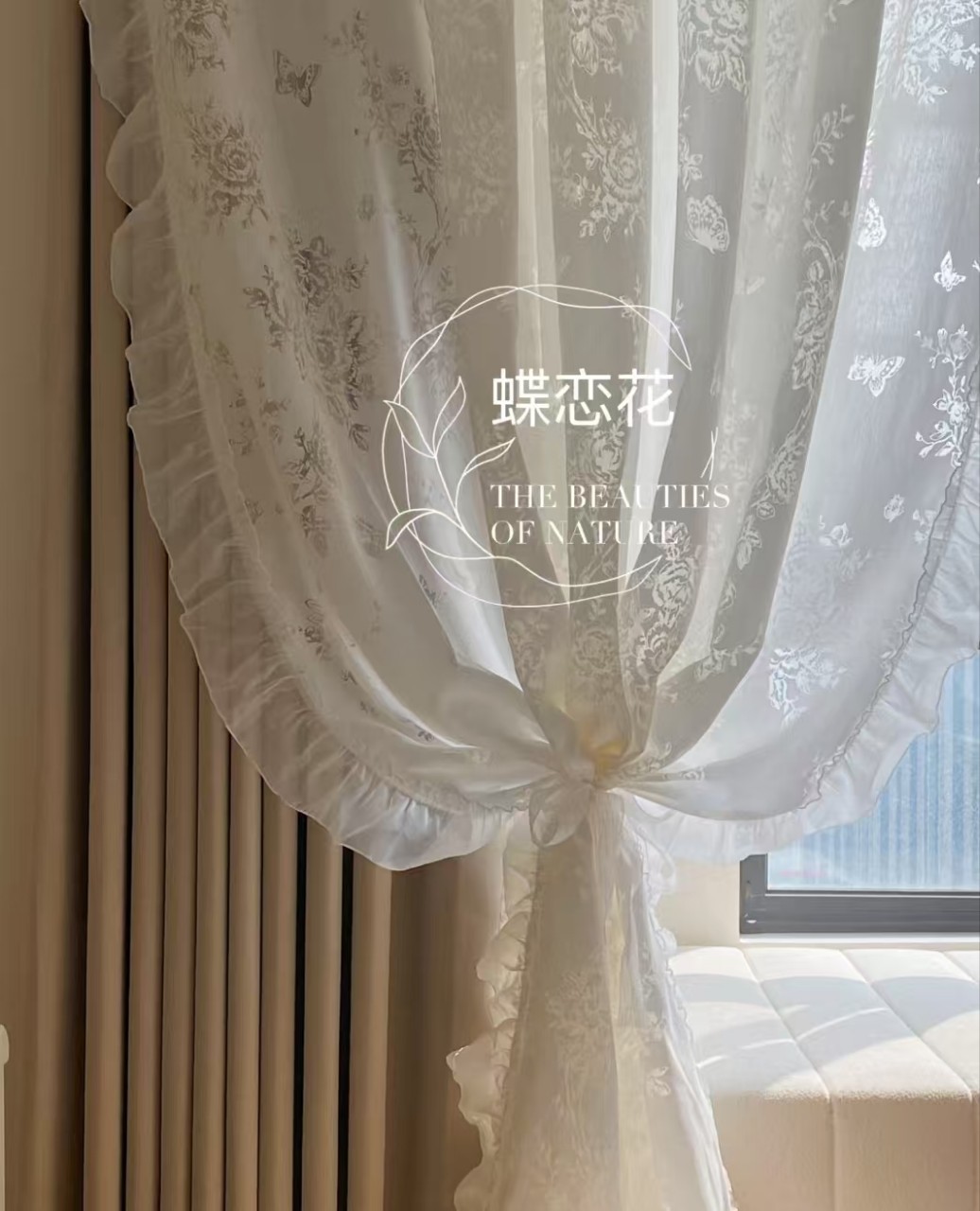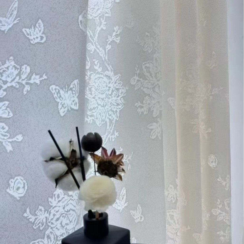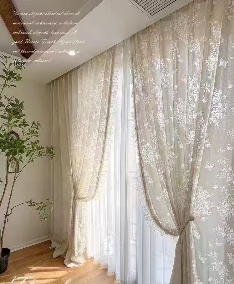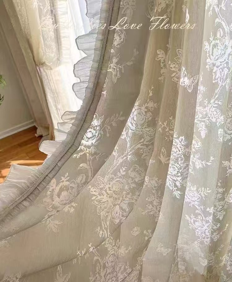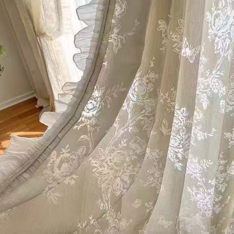 꽃과 나비가 사랑에 빠진 프랑스풍 앤틱 스타일의 창문 커튼, 낭만적인 복고풍 가정용 불투명 커튼