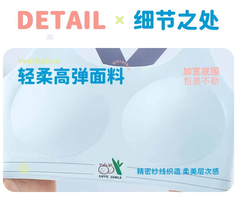 신제품 인기 여름 여아 발달 기간 속옷, 귀엽고 흔적이 없는 고정 컵 여아 중고등학교 스포츠 브라