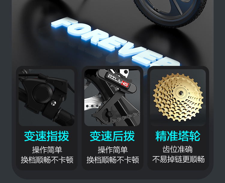 • 기술 실버 강화 스포크 휠 + 7단 변속기 + 듀얼 디스크 브레이크 99팩 쇼크 업소버 + 18inch