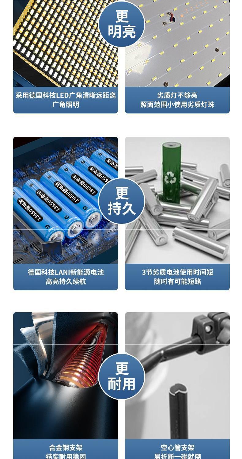 야시장, 건설현장, 긴 배터리 수명, 정전 비상용 초고휘도 LED 태양광 충전 캠핑 조명