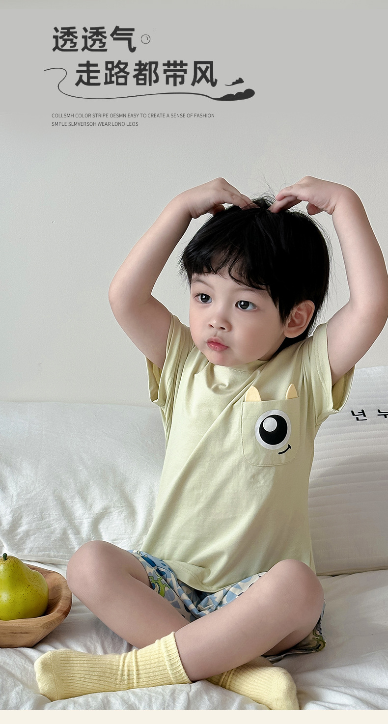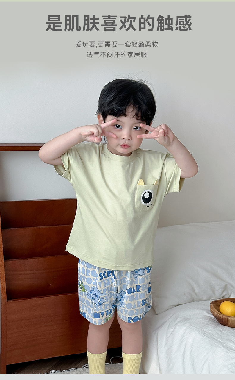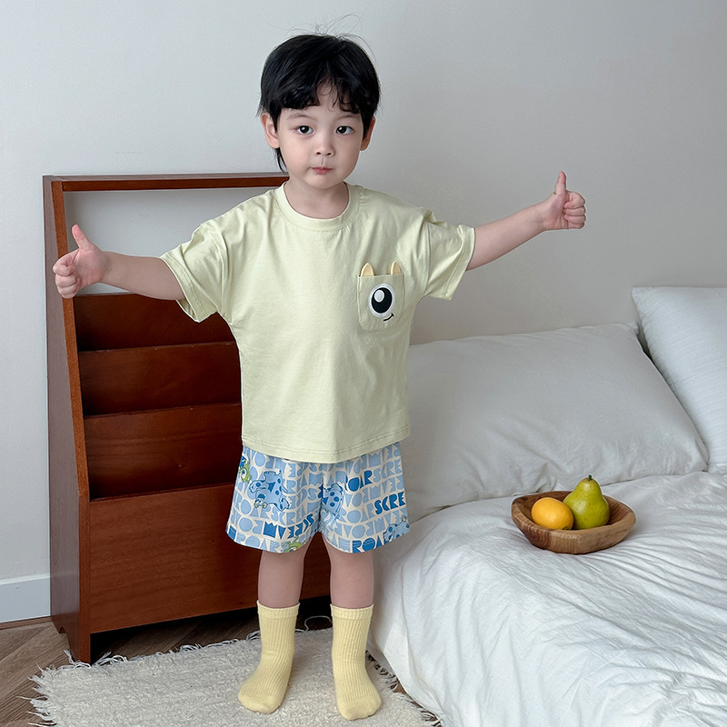 아동용 반팔 반바지 세트, 남아용, 중대형 아동용, 만화 캐릭터, 여름용 얇은 홈웨어, 캐주얼, 외출복으로도 착용 가능스토어 가기