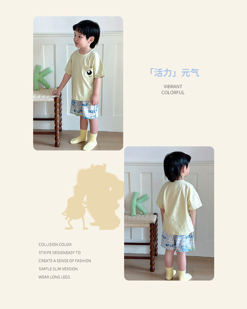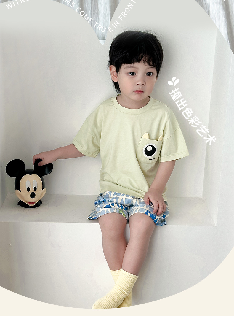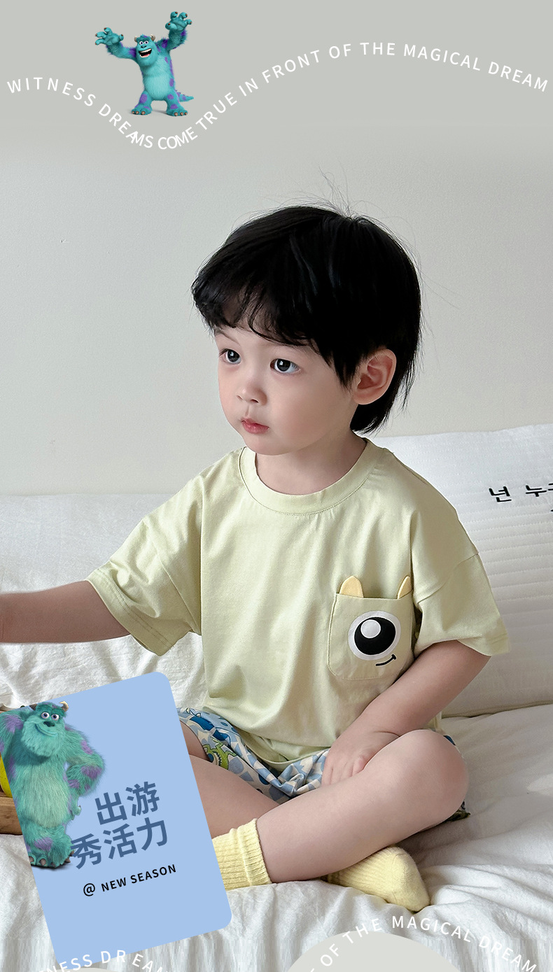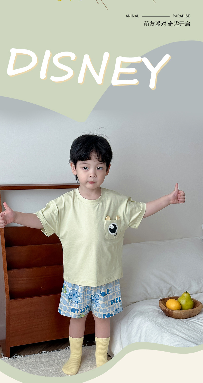 아동용 반팔 반바지 세트, 남아용, 중대형 아동용, 만화 캐릭터, 여름용 얇은 홈웨어, 캐주얼, 외출복으로도 착용 가능스토어 가기