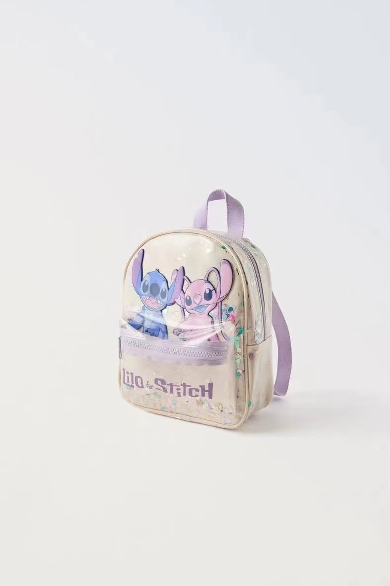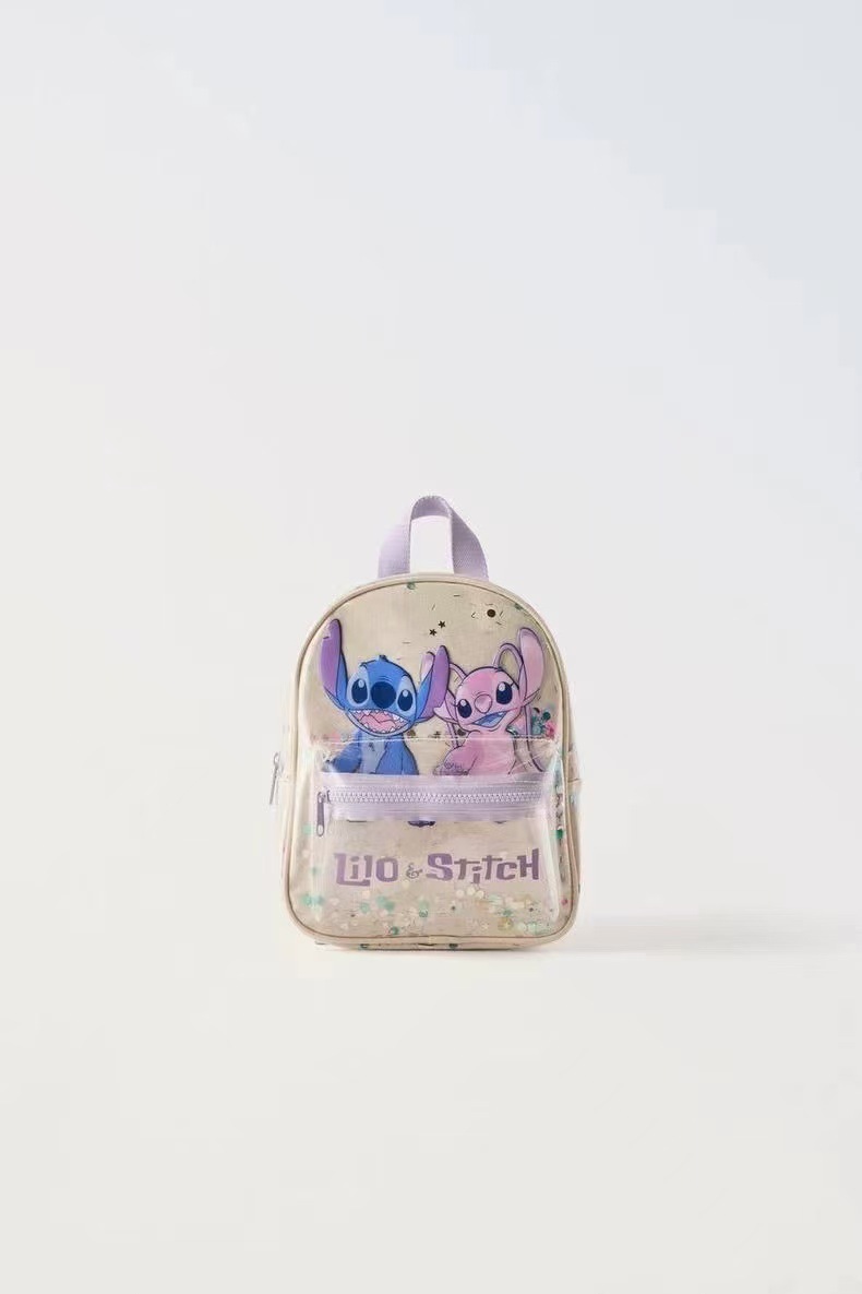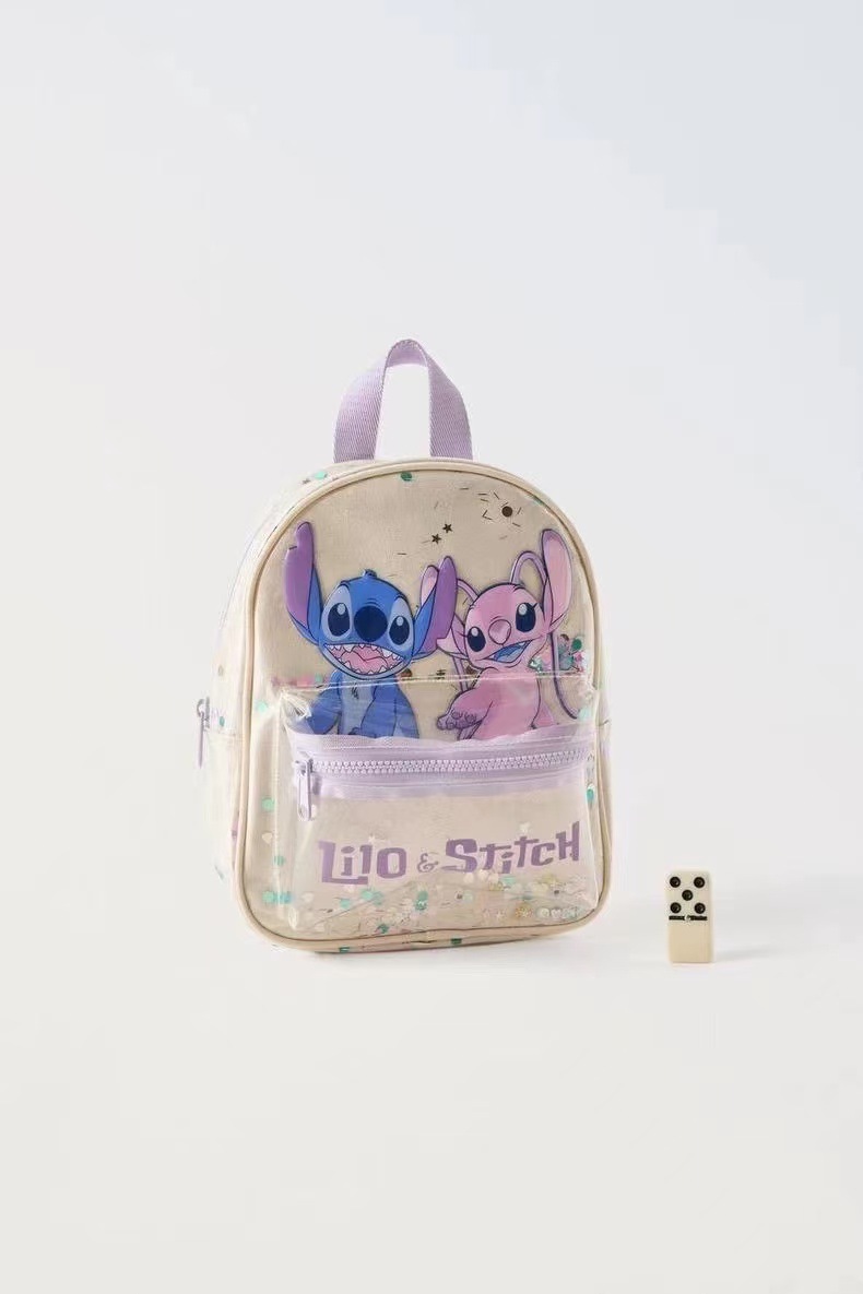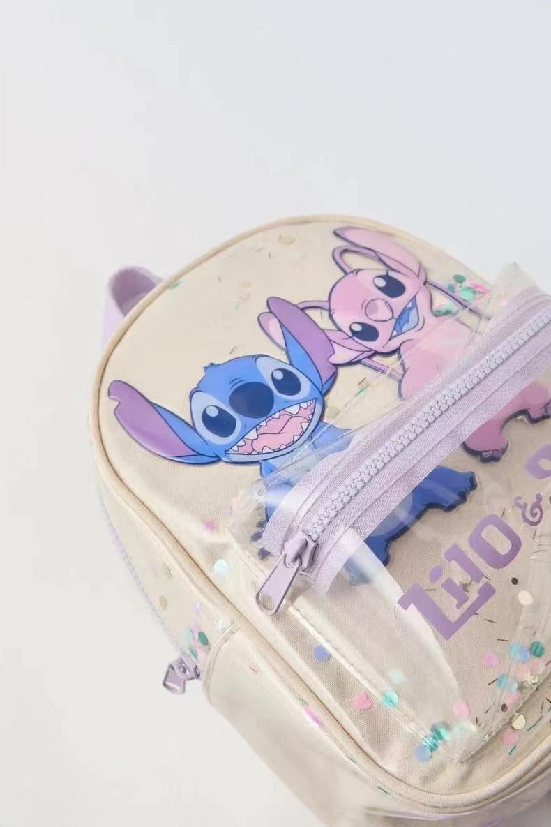 Z2025 새로운 스티치 투명 스팽글 배낭 만화 귀여운 유치원 학교 가방 소년과 소녀 배낭스토어 가기