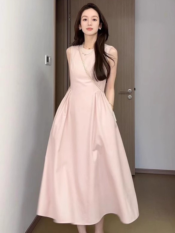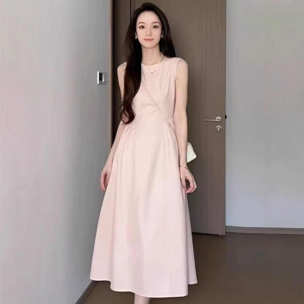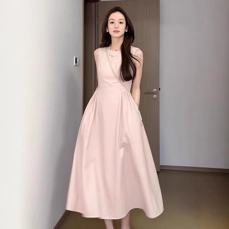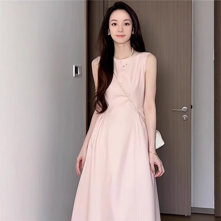 핑크 민소매 조끼 원피스 어린이 여름 2025 새로운 프랑스 기질 첫사랑 아름다운 슈퍼 잘 생긴 긴 원피스