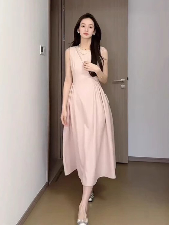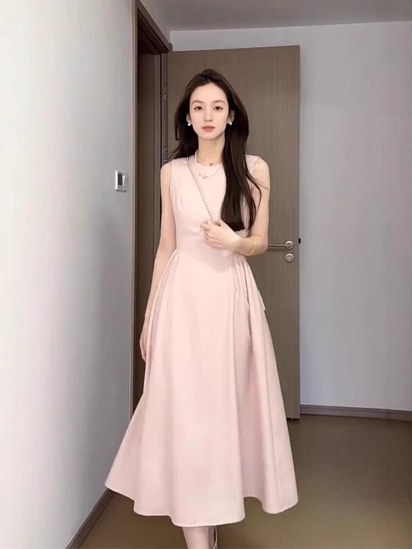 핑크 민소매 조끼 원피스 어린이 여름 2025 새로운 프랑스 기질 첫사랑 아름다운 슈퍼 잘 생긴 긴 원피스스토어 가기