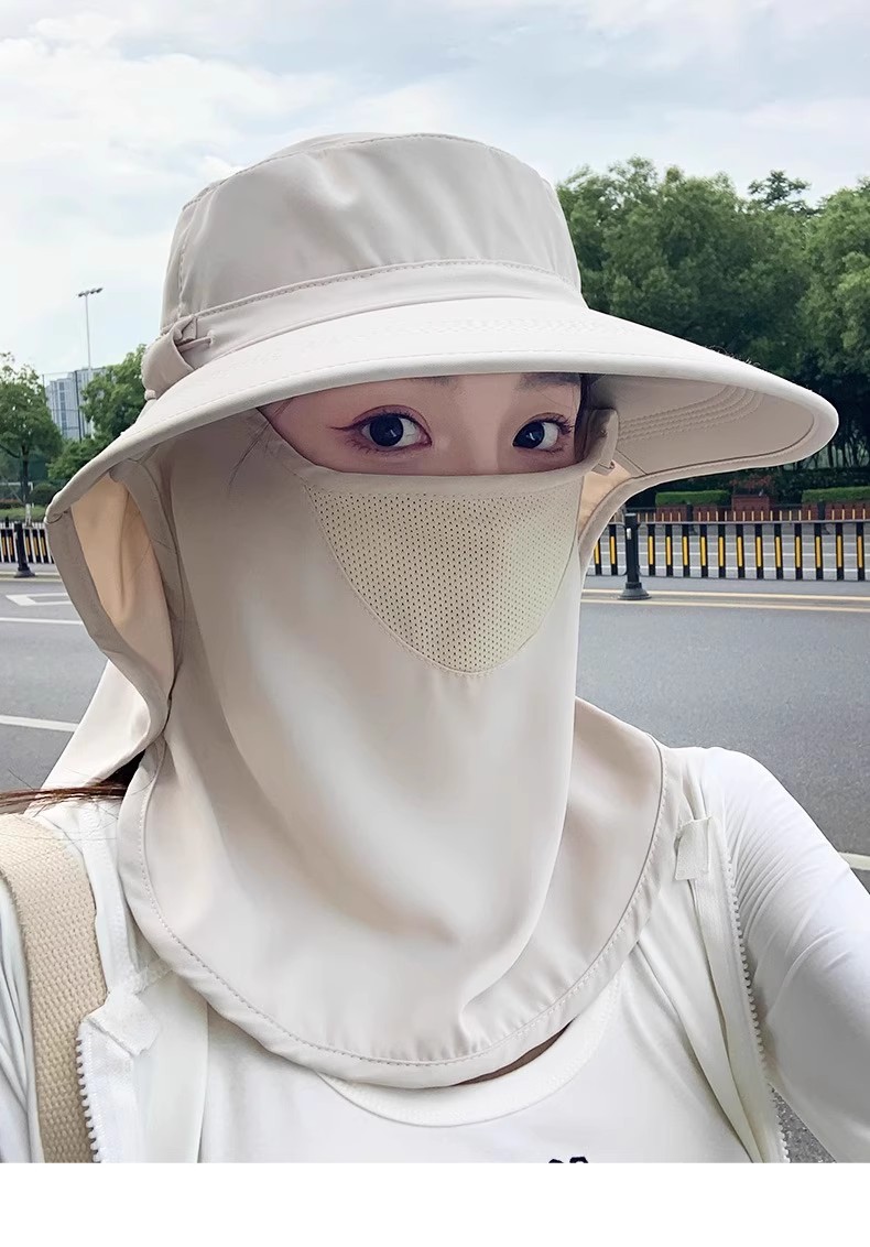 올 라운드 태양 모자 통기성 얼굴 마스크 목 보호 통합 태양 모자 자외선 보호 여름 여성을위한 야외 태양 모자