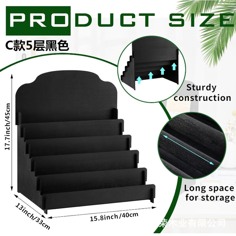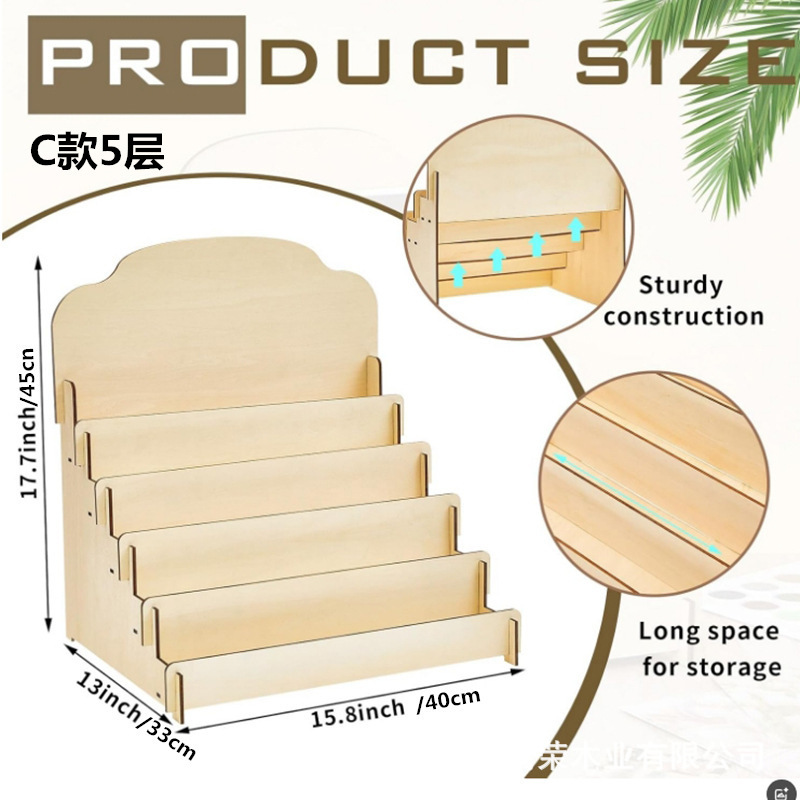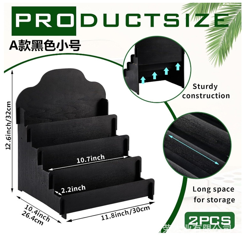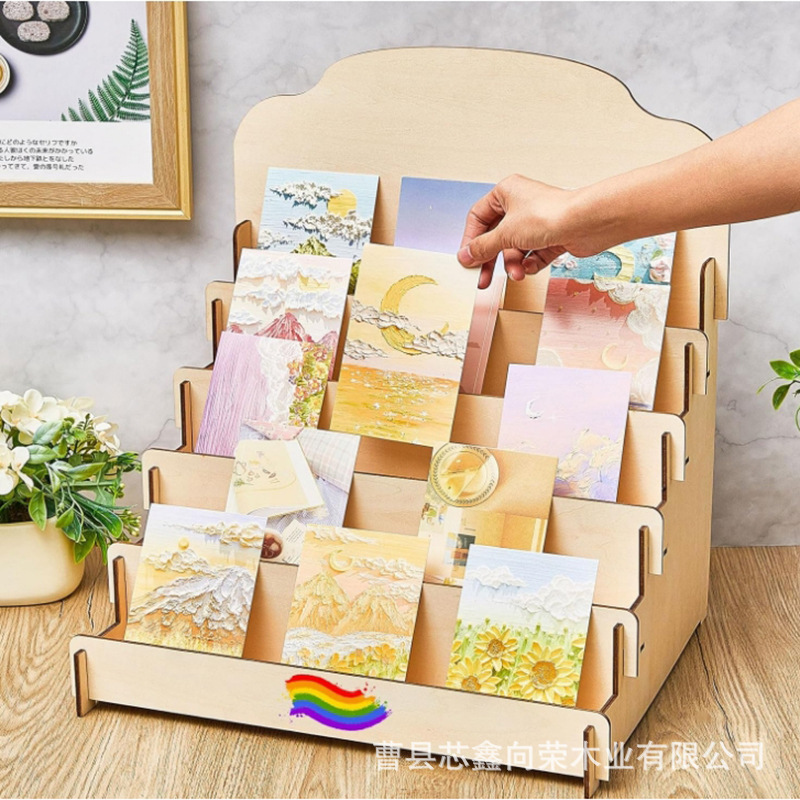 나무 인사말 카드 디스플레이 랙, 사다리꼴 포스터 및 엽서 보관 랙, 접합 데스크탑 화장품 보관 랙