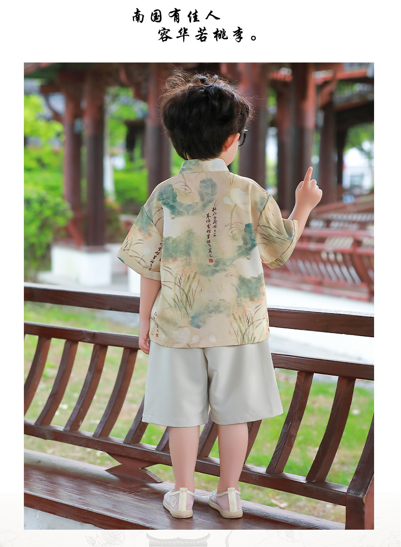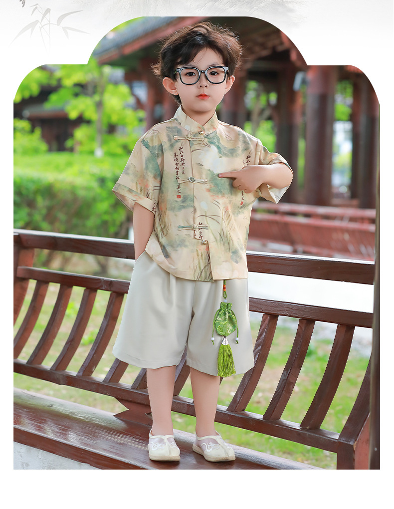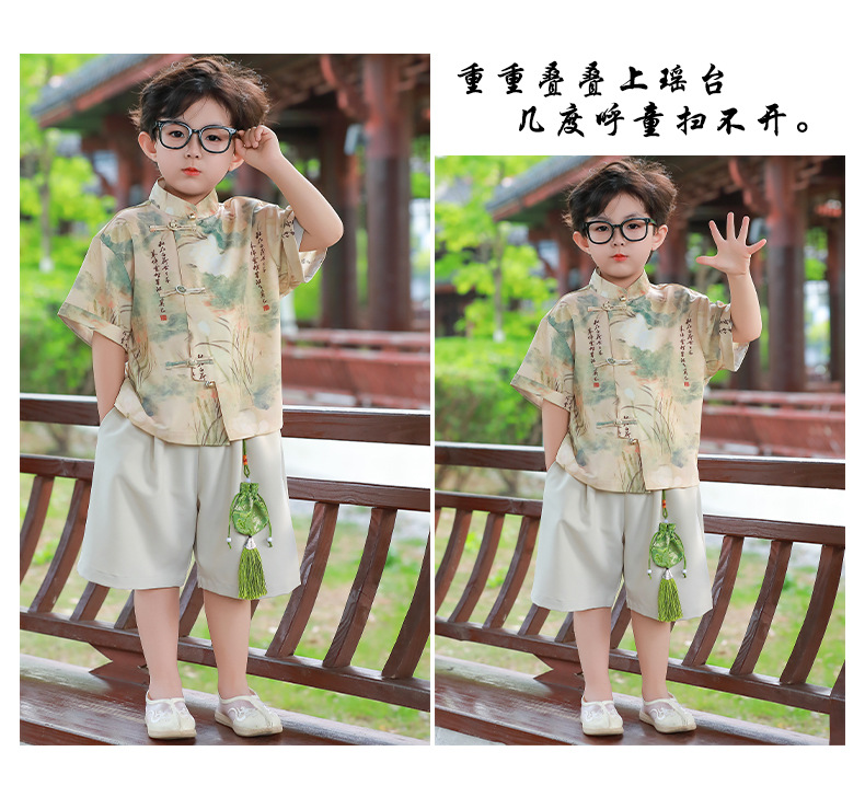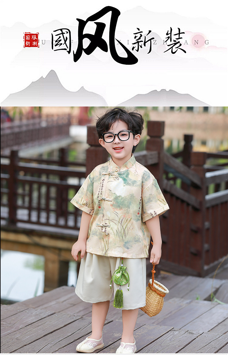 한푸 소년의 여름 반팔 탕 세트 투피스 세트 아기의 새로운 중국식 세트 중국 스타일의 어린 시절과 어린 시절 중국 스타일의 고대 원피스스토어 가기