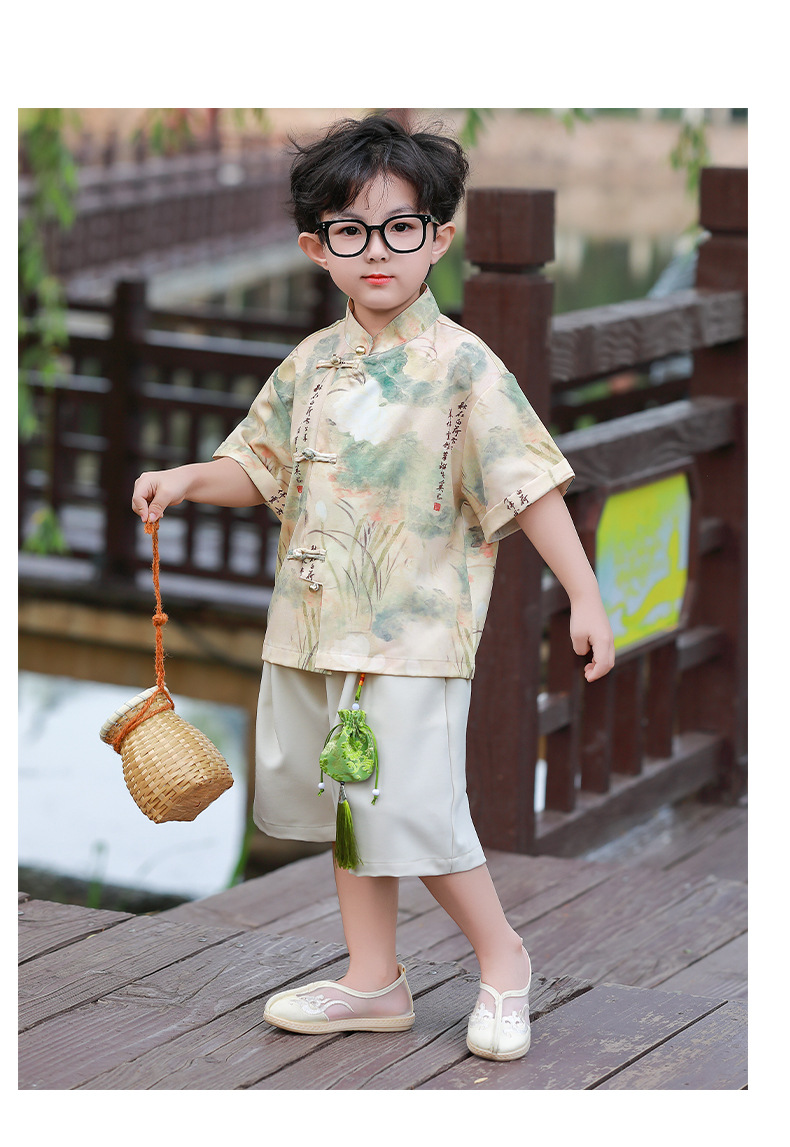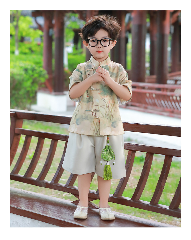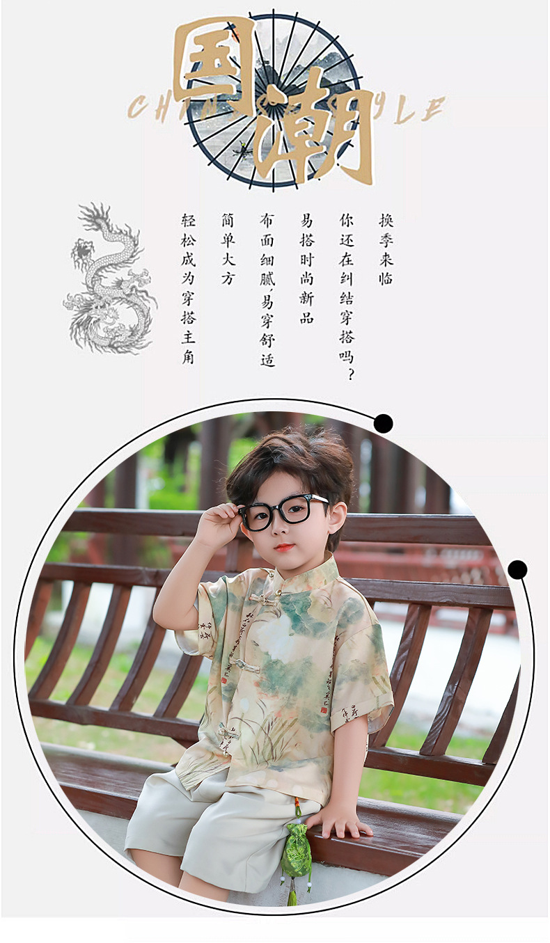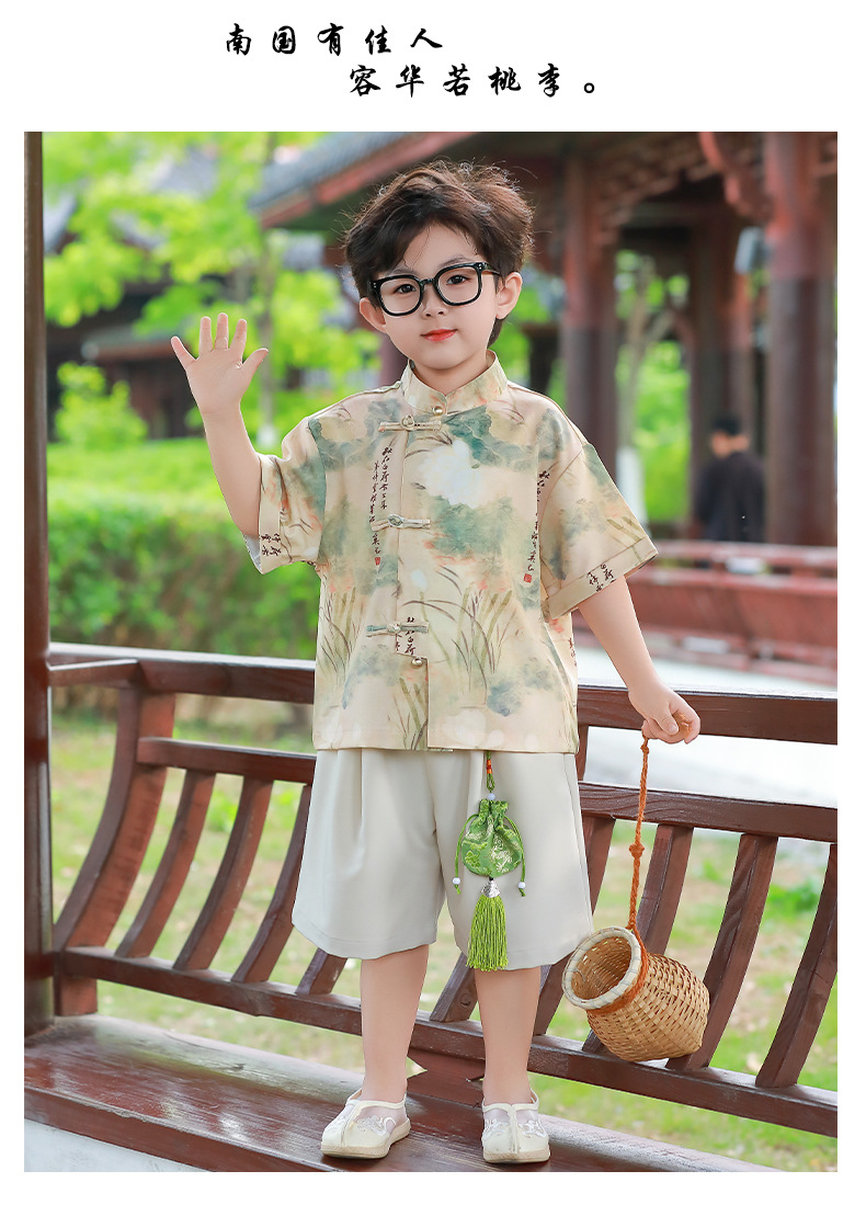 한푸 소년의 여름 반팔 탕 세트 투피스 세트 아기의 새로운 중국식 세트 중국 스타일의 어린 시절과 어린 시절 중국 스타일의 고대 원피스스토어 가기