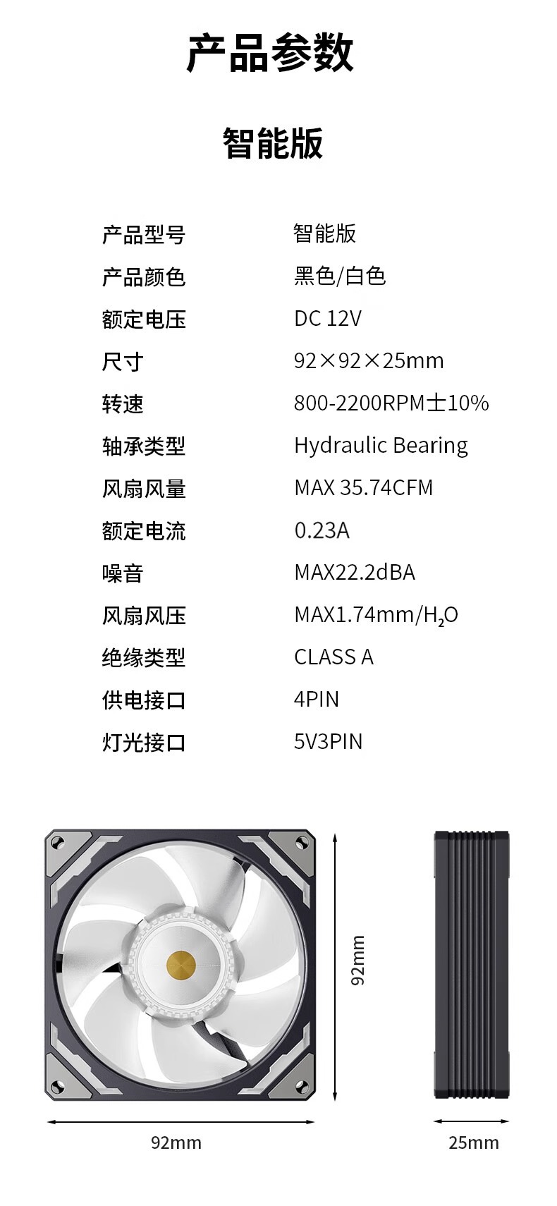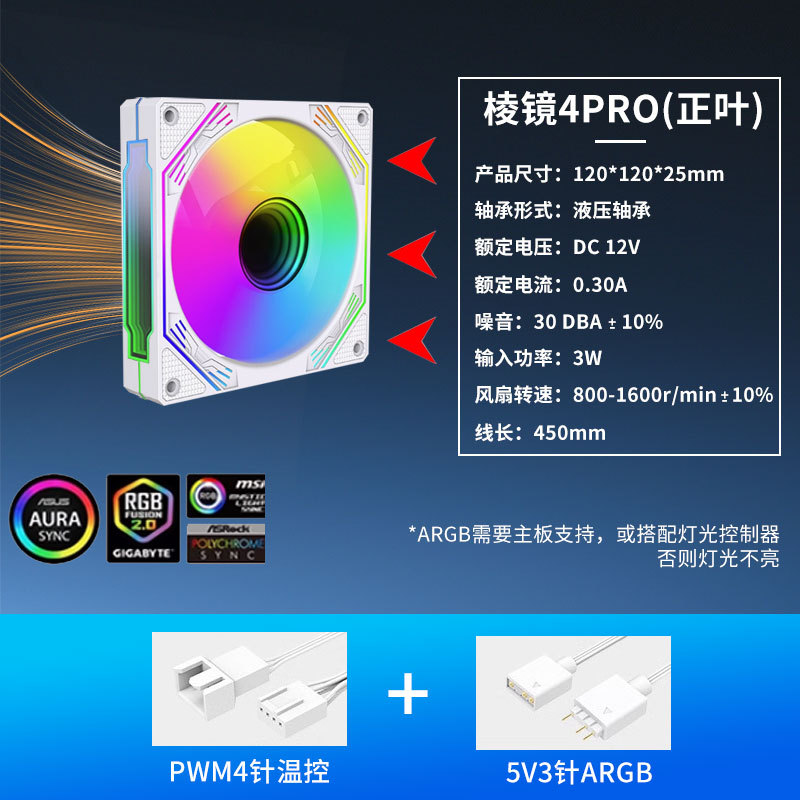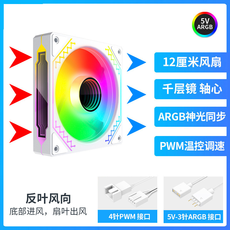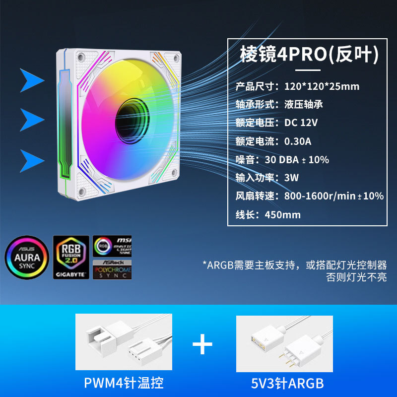 • 9CM 프리즘 팬 화이트 [ARGB+ 온도 조절 버전]