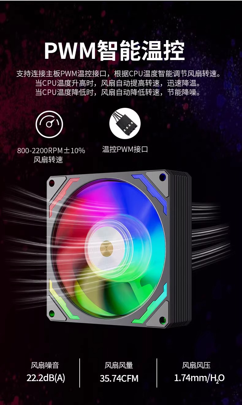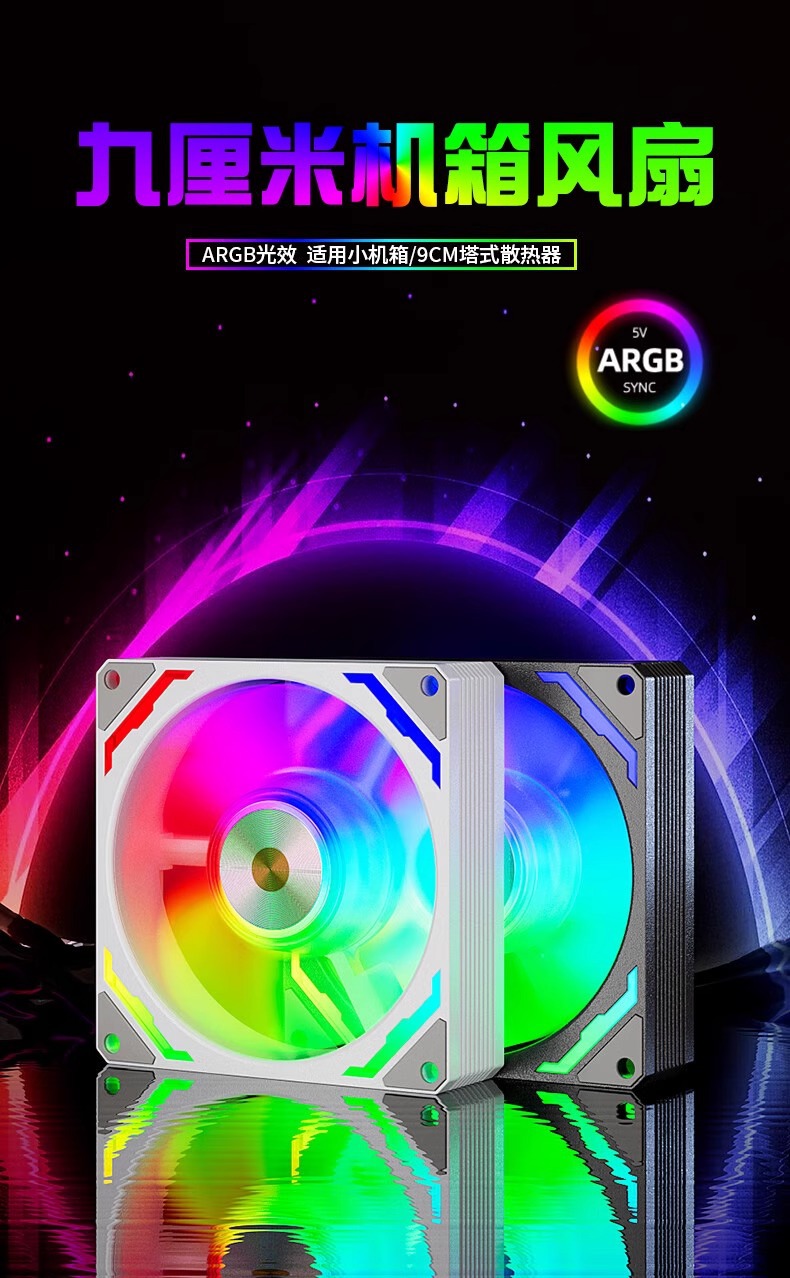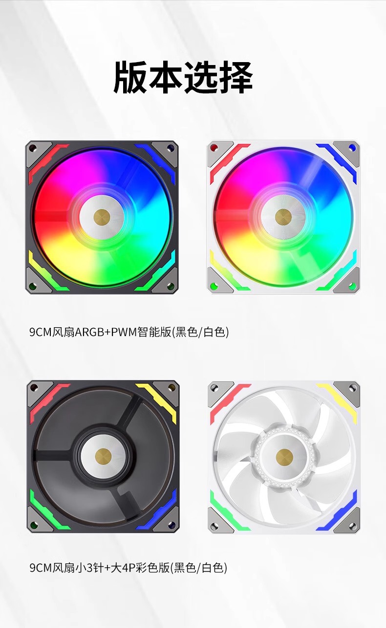 • 9CM 프리즘 팬 블랙 [ARGB+ 온도 조절 버전]