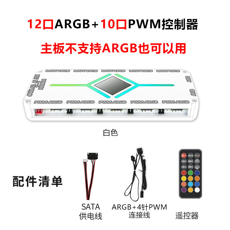• 허브 흰색 12포트 ARGB+10포트 PWM 컨트롤러+리모컨
