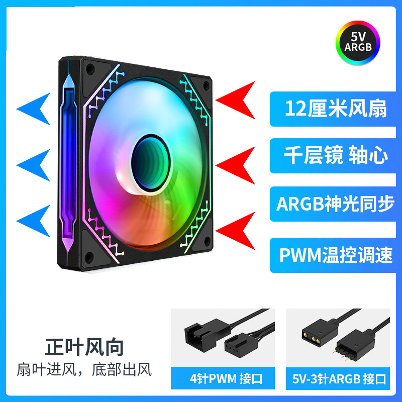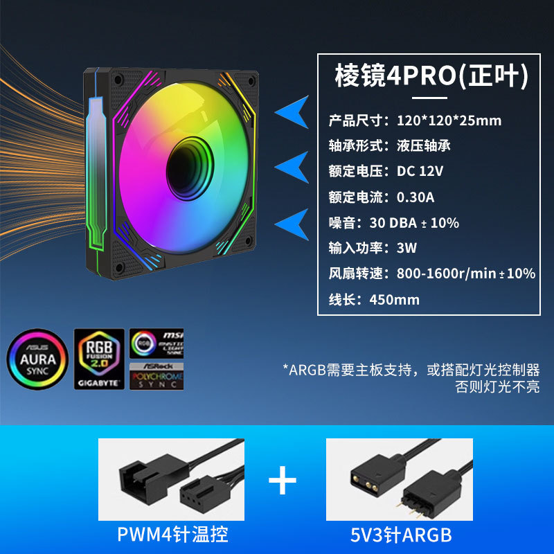 • 프리즘 4세대 PRO 블랙 포워드 윈드 ARGB+PWM 온도 조절 백
