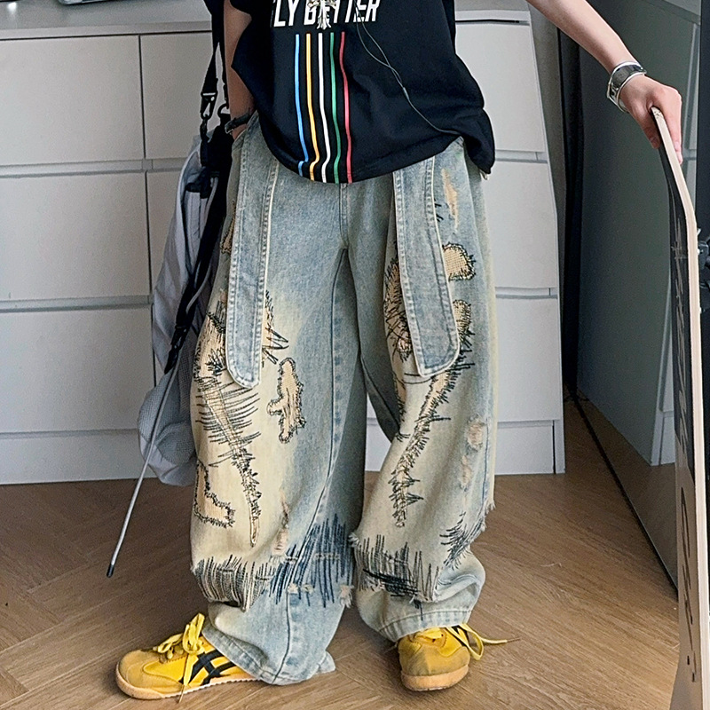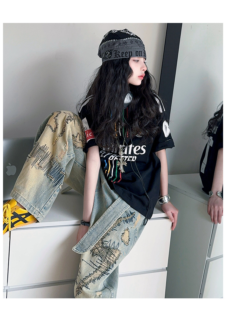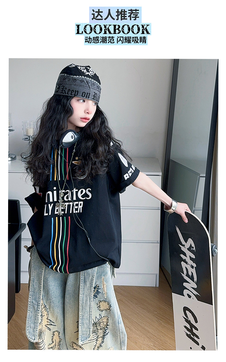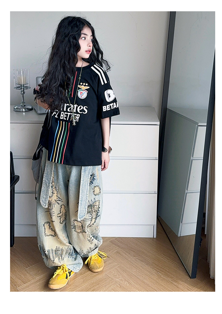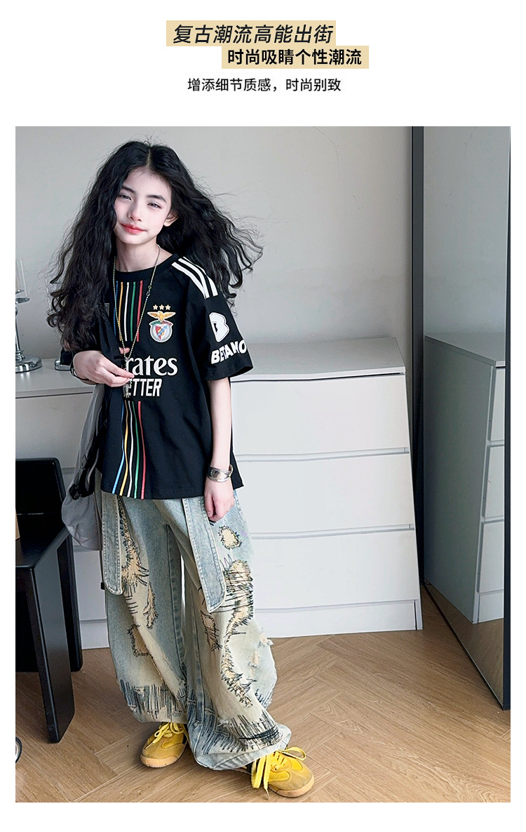 오렌지 타이거 걸스 세트 2025 여름 새 한국 어린이 캐주얼 스포츠 반팔 청바지 투피스 세트스토어 가기