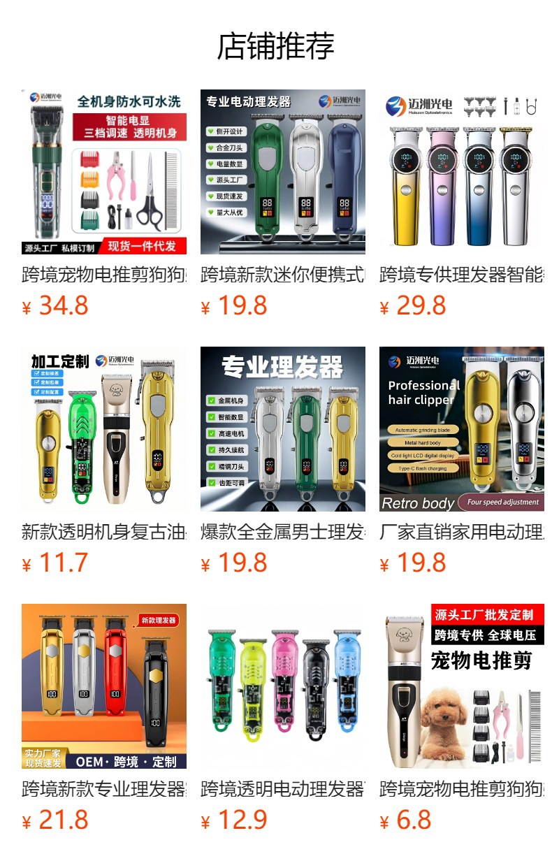 국경 간 인기 판매 리튬 배터리 충전식 이발기 LCD 디스플레이 홈 헤어 살롱 이발소 전문 전기 이발기스토어 가기