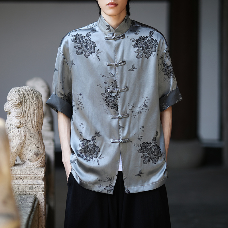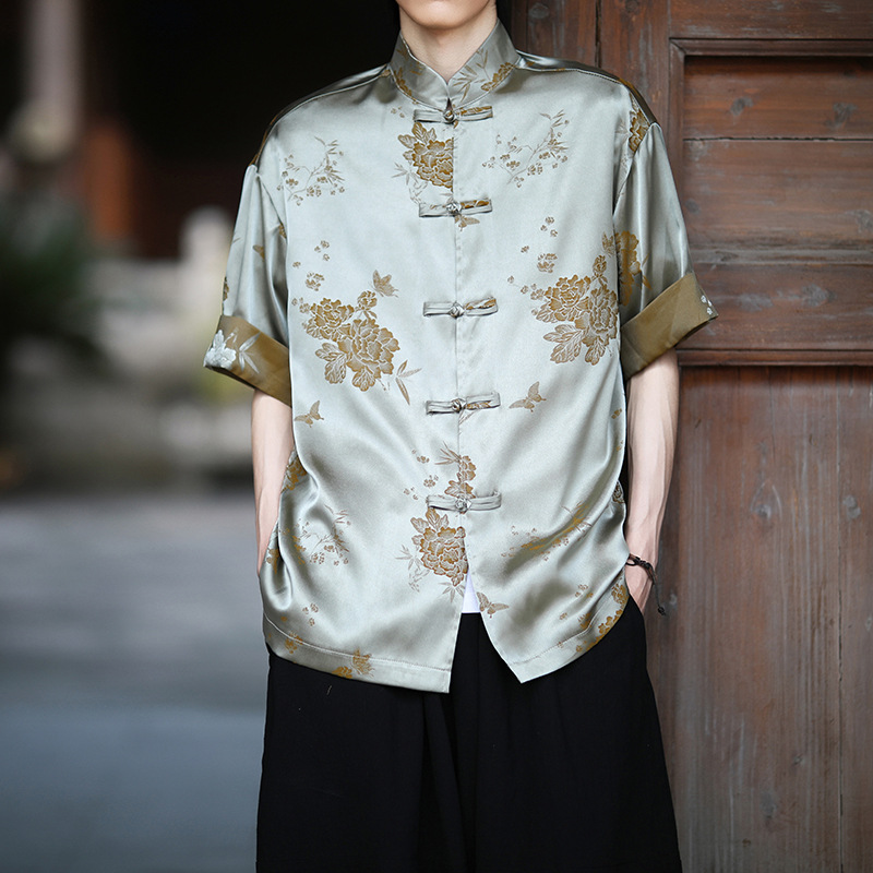 중국 스타일의 새로운 중국 스타일 셔츠 자카드 빈티지 짧은 소매 버클 대비 최고 여름 반 소매 루즈 탑 남성스토어 가기