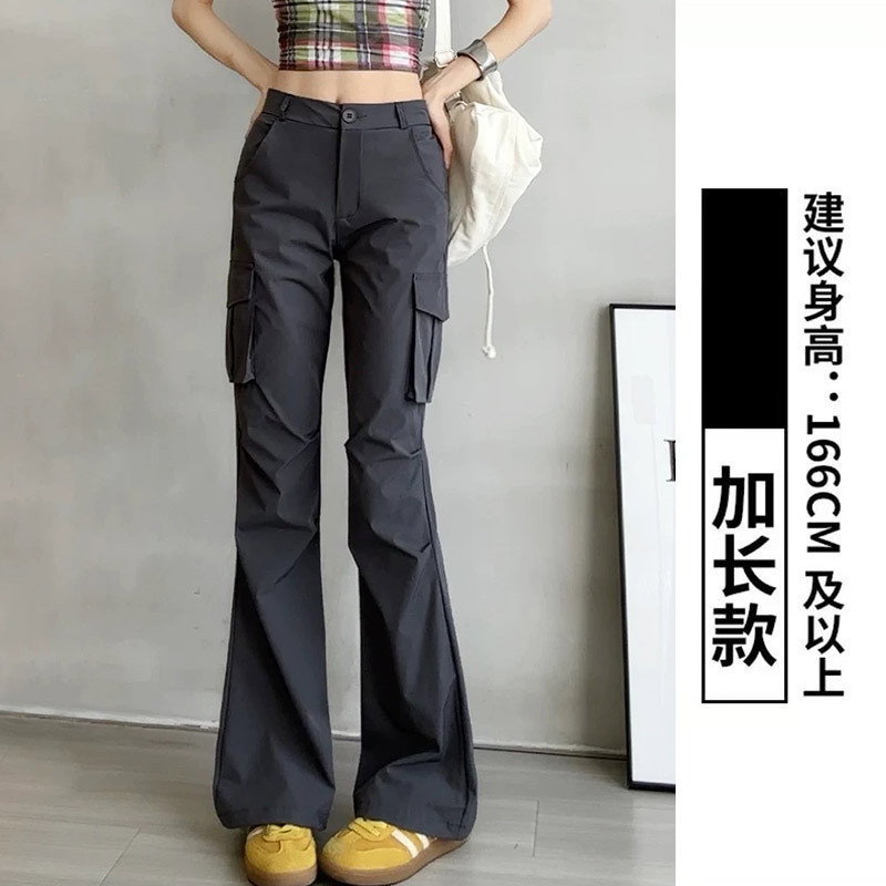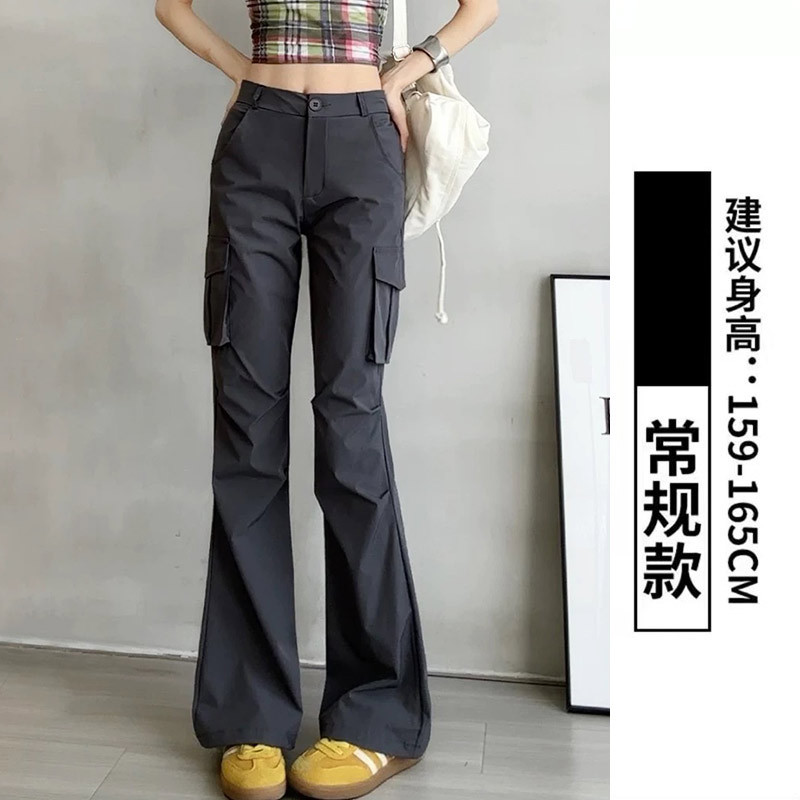 마이크로 플레어 오버올 여성 봄 여름 2025 뉴 그레이 스몰 좁은 버전 등산 낙하산병 플레어 팬츠