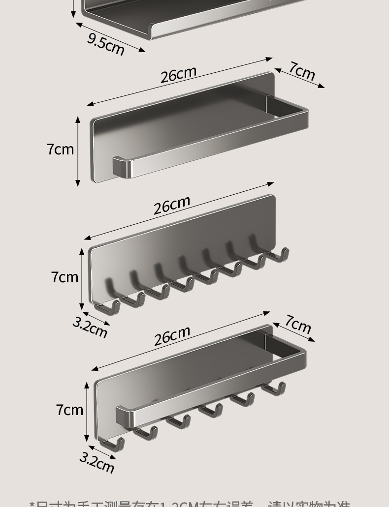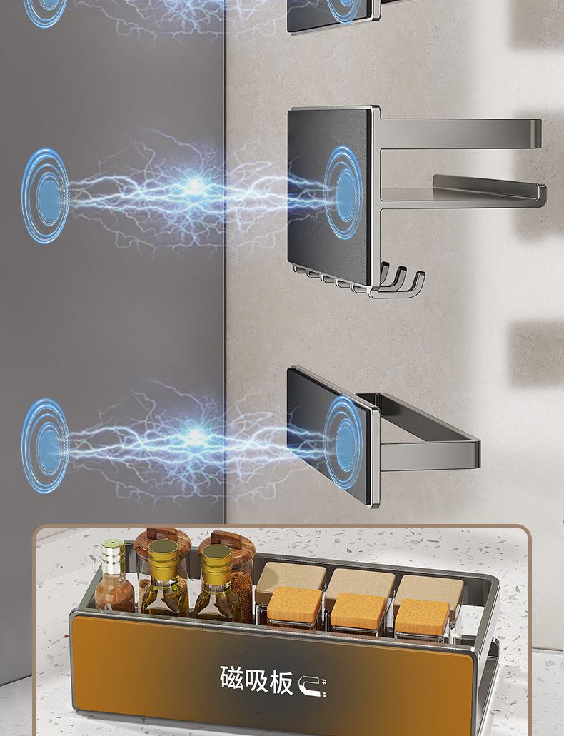 • 건애쉬-마그네틱 스타일丨럭셔리 3종세트B [수납선반+키친페이퍼걸이+행후크]