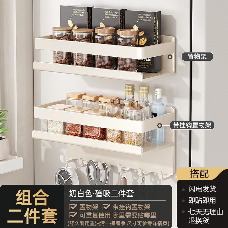 • 밀크 화이트-마그네틱 스타일丨주방 수납 선반*2