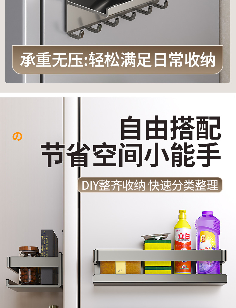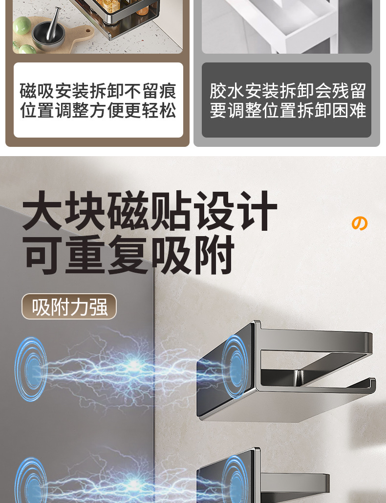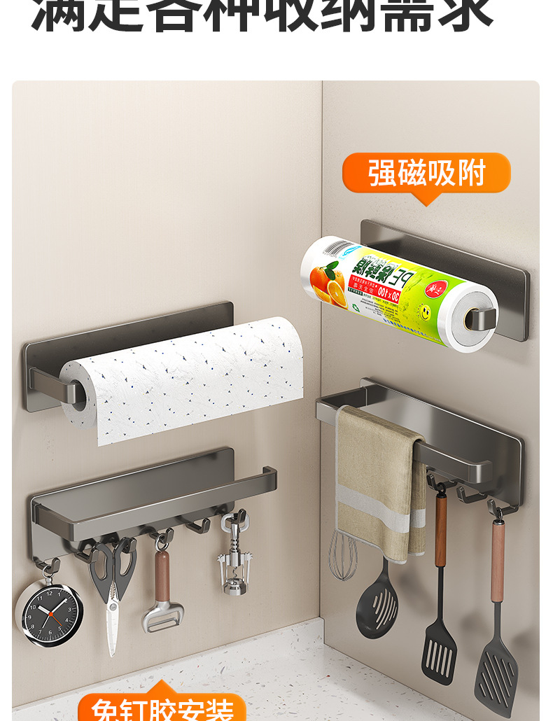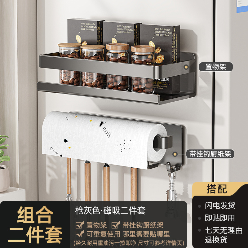 • 건애쉬-마그네틱 스타일丨럭셔리 투피스 세트 B [수납선반+후크부착 키친페이퍼걸이]
