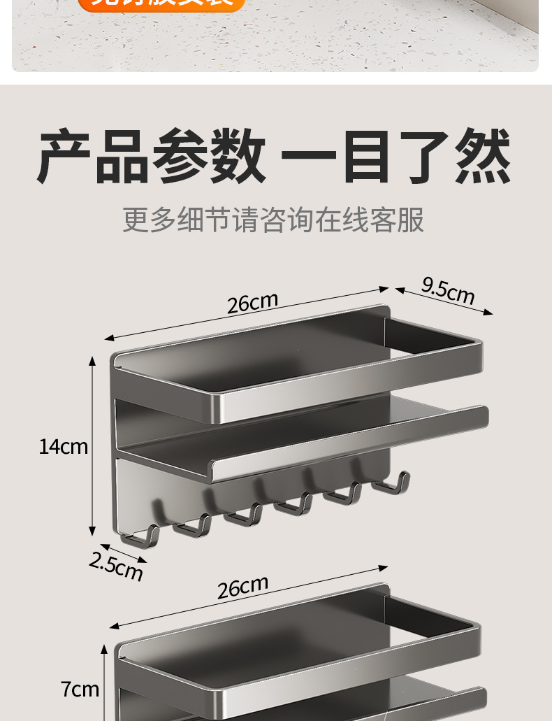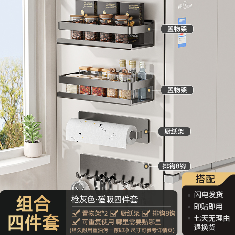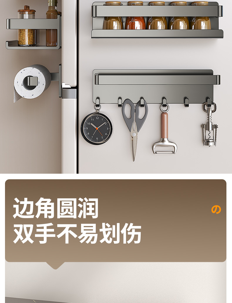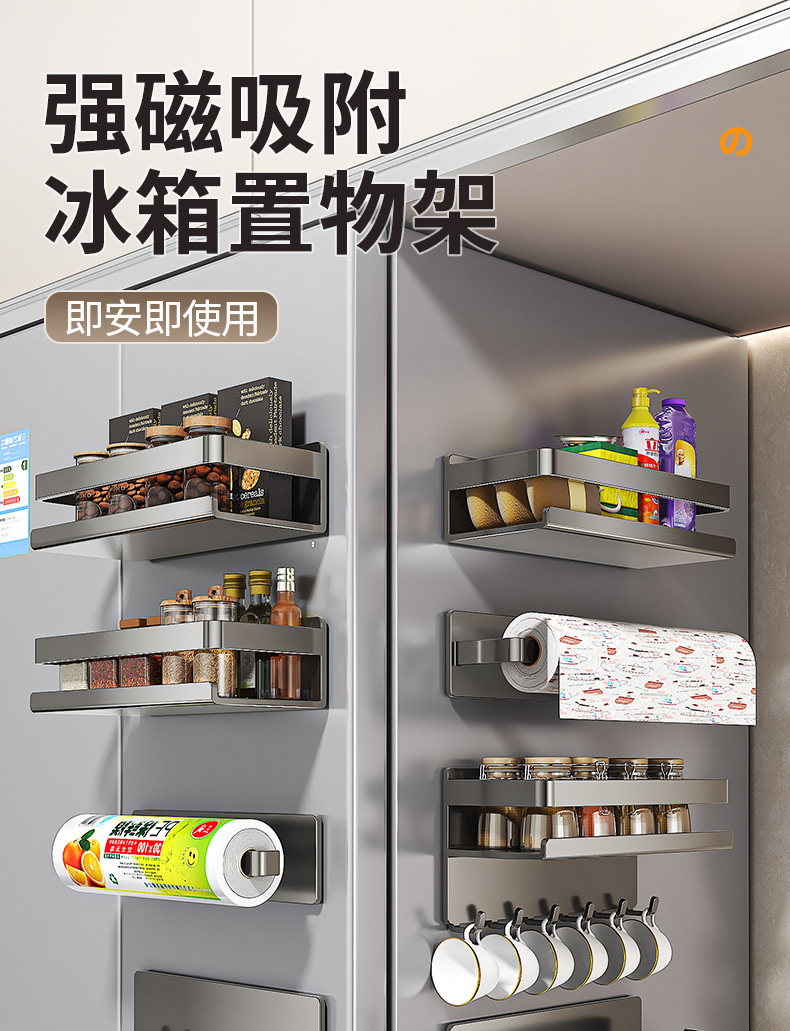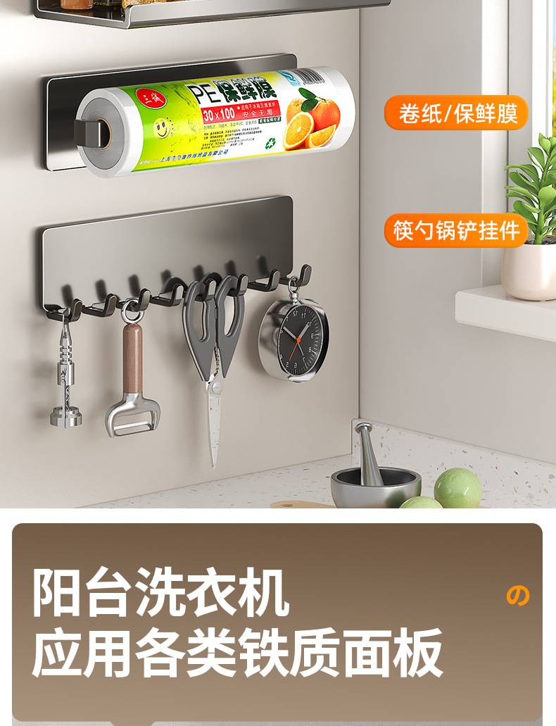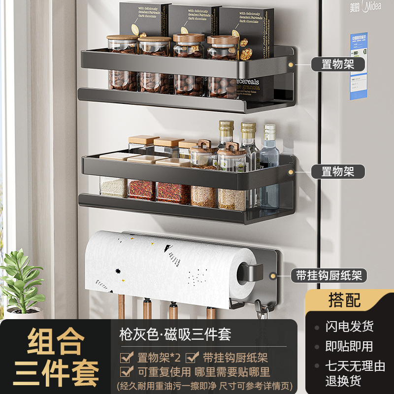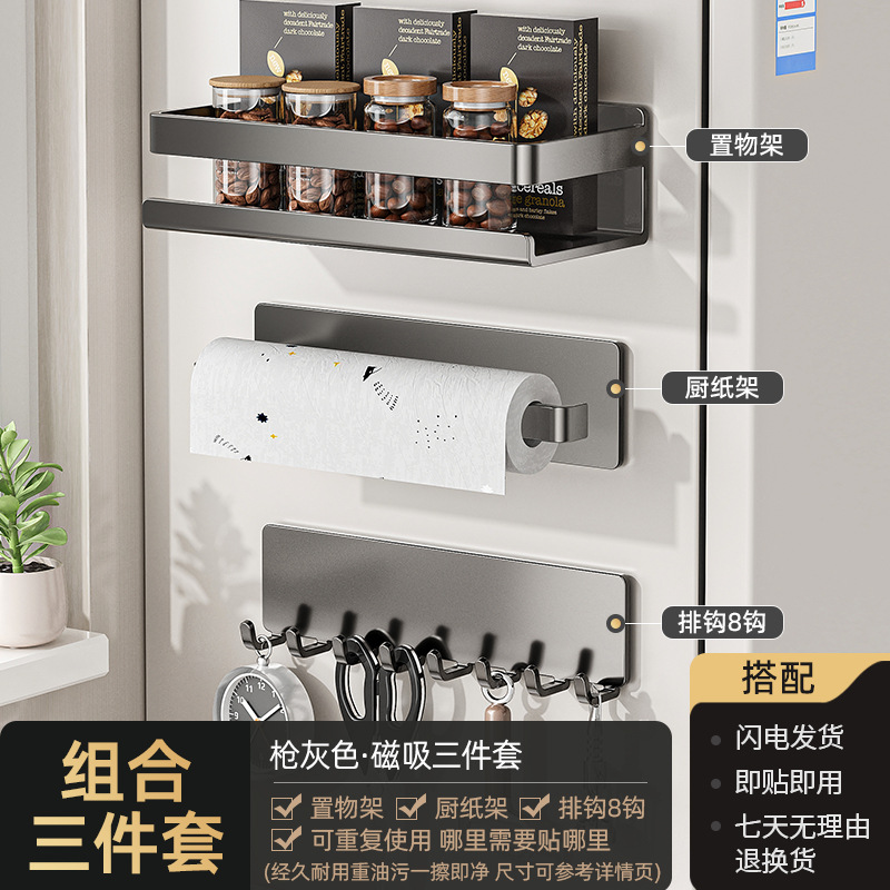 • 건애쉬-마그네틱 스타일丨럭셔리 3종세트A [수납선반*2+후크부착 키친페이퍼홀더]