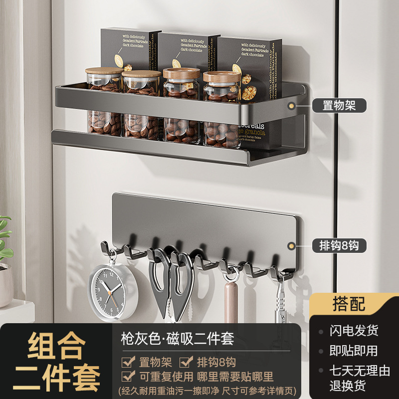• 건그레이-마그네틱 스타일丨럭셔리 투피스 세트 C [수납선반+후크부착수납선반]
