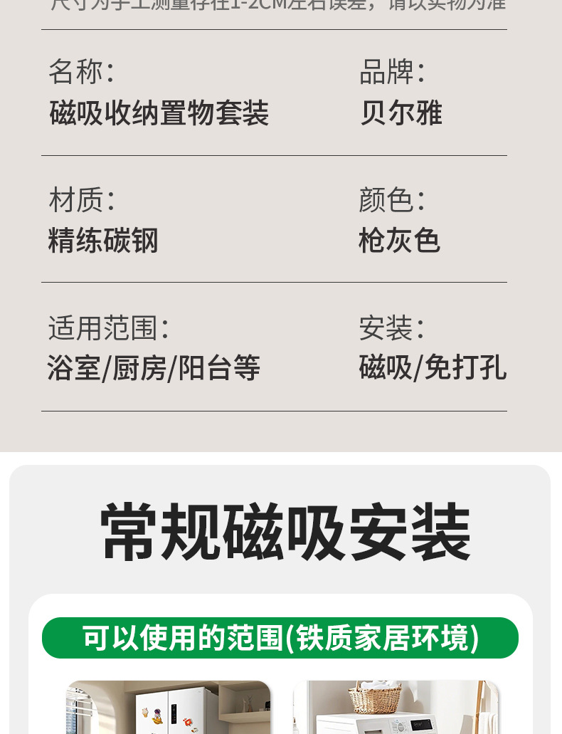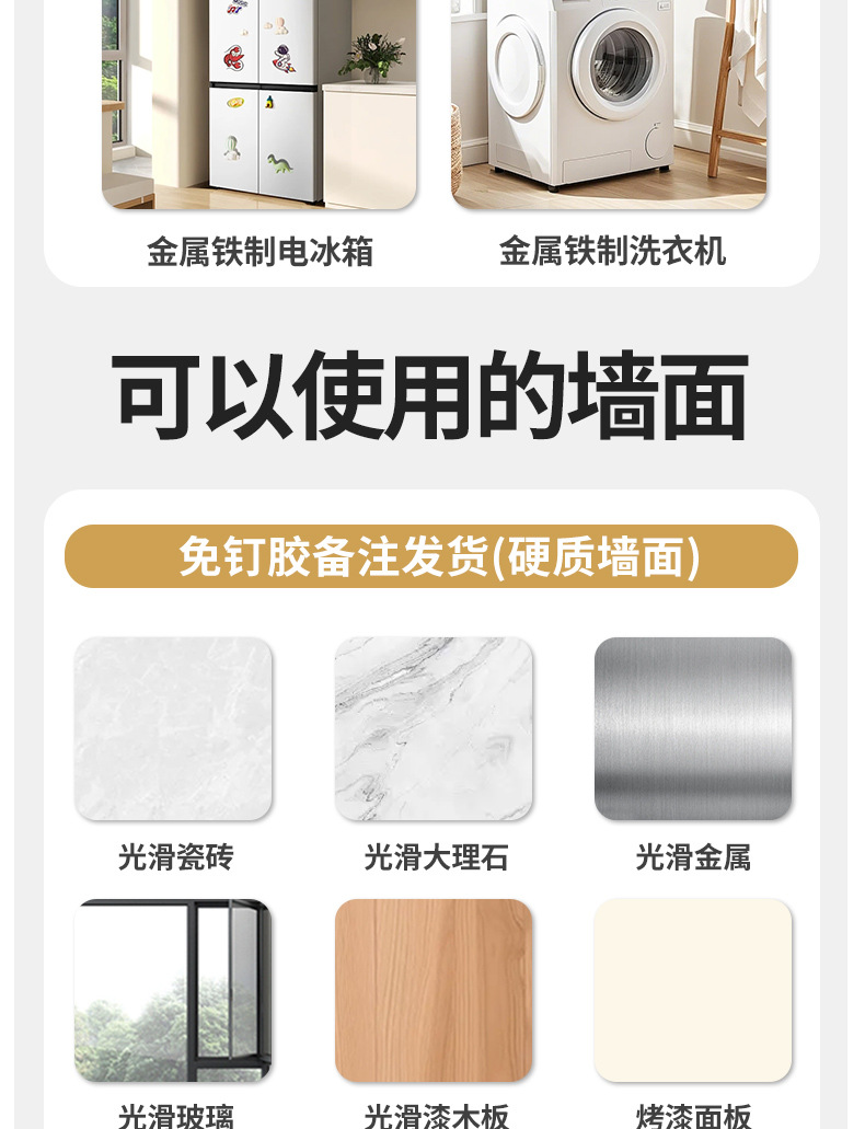 • 밀크화이트-마그네틱 스타일丨럭셔리 투피스 세트 C [수납선반+후크부착 수납선반]