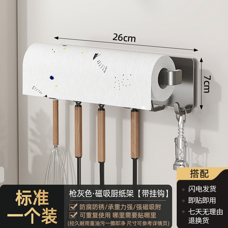 • Gun Ash - 마그네틱 스타일丨후크가 있는 키친 페이퍼 홀더