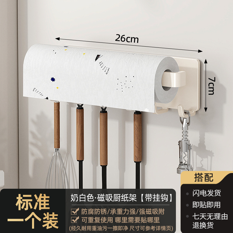 • 밀크 화이트 - 마그네틱 스타일丨후크가 있는 키친 페이퍼 홀더
