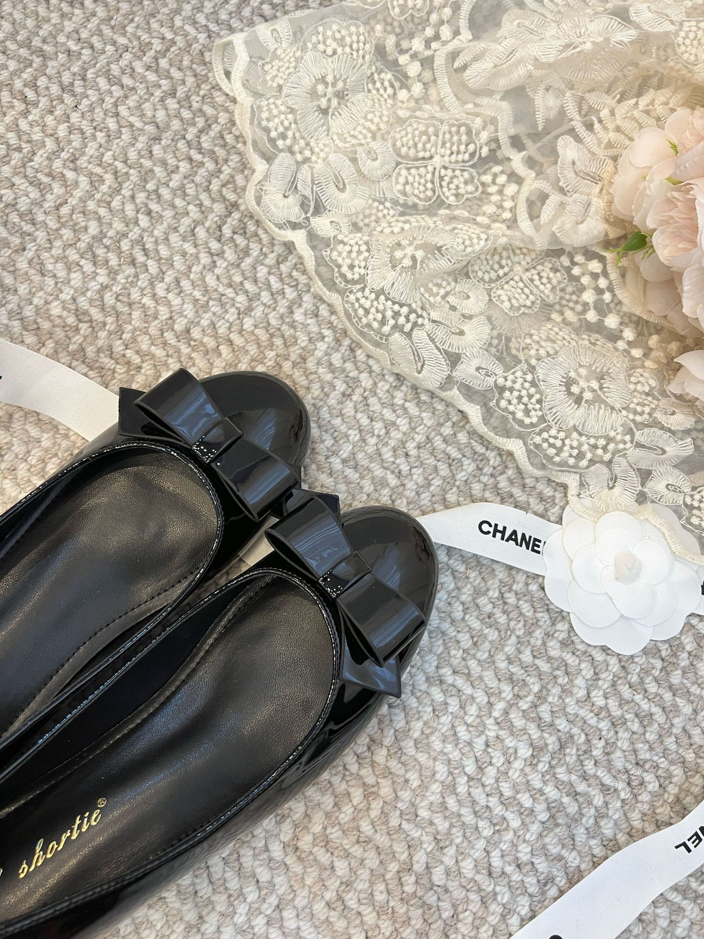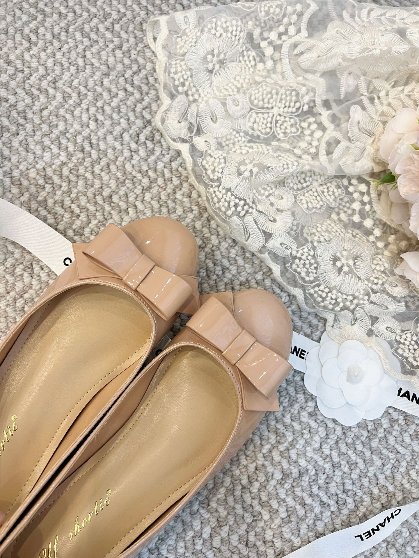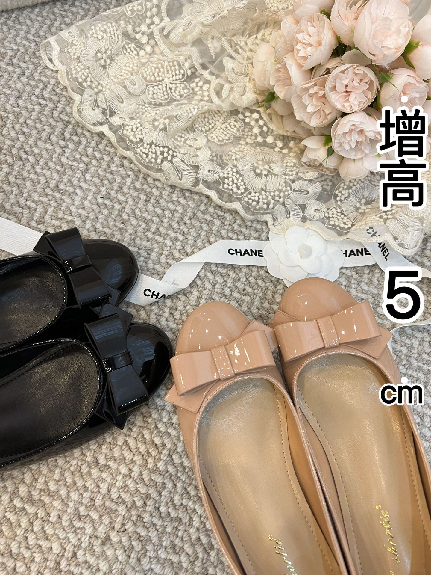 증가 5cm 활 라운드 머리 얕은 입 신발 여성 2025 봄 새로운 요정 스타일 특허 가죽 슬립 온 소프트 솔 신발