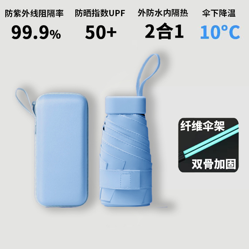 6 개의 우산 울트라 라이트 캡슐 우산 포켓 블랙 고무 태양 우산 선 쉐이드 여성의 새로운 더블 뼈 플러스 강도