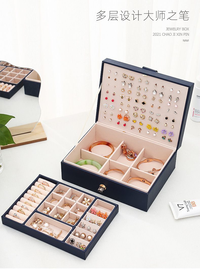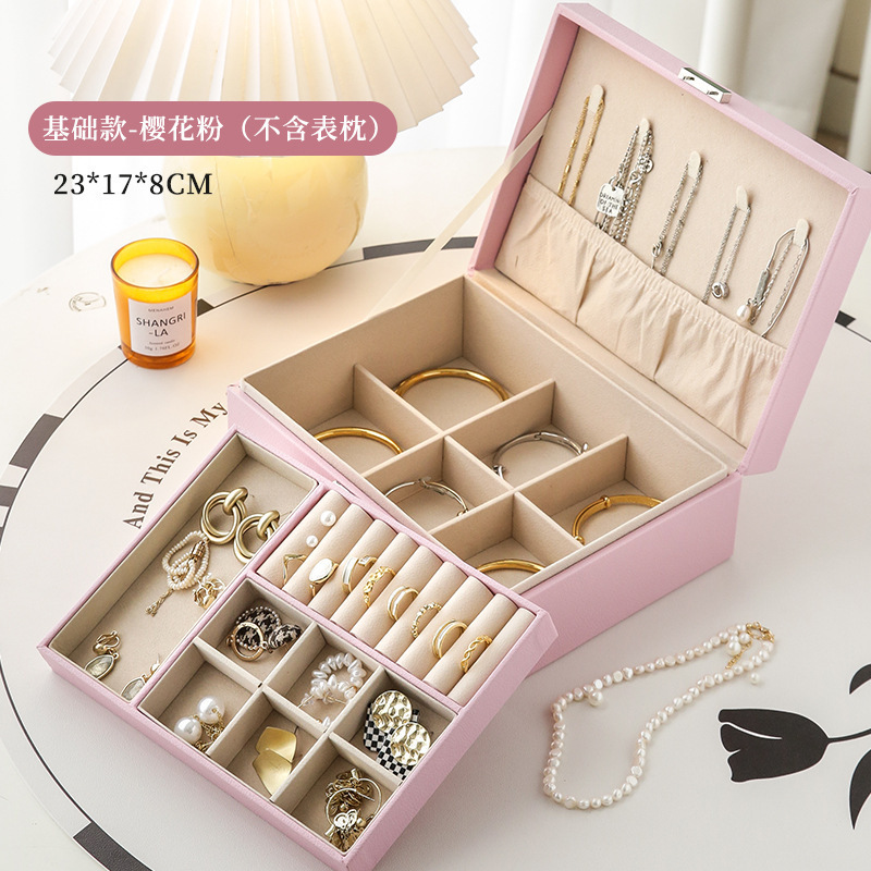 시계 가죽 PU 휴대용 보석 상자 대용량 반지 더블 레이어 보석 보관 상자 목걸이 보석 상자 보석스토어 가기