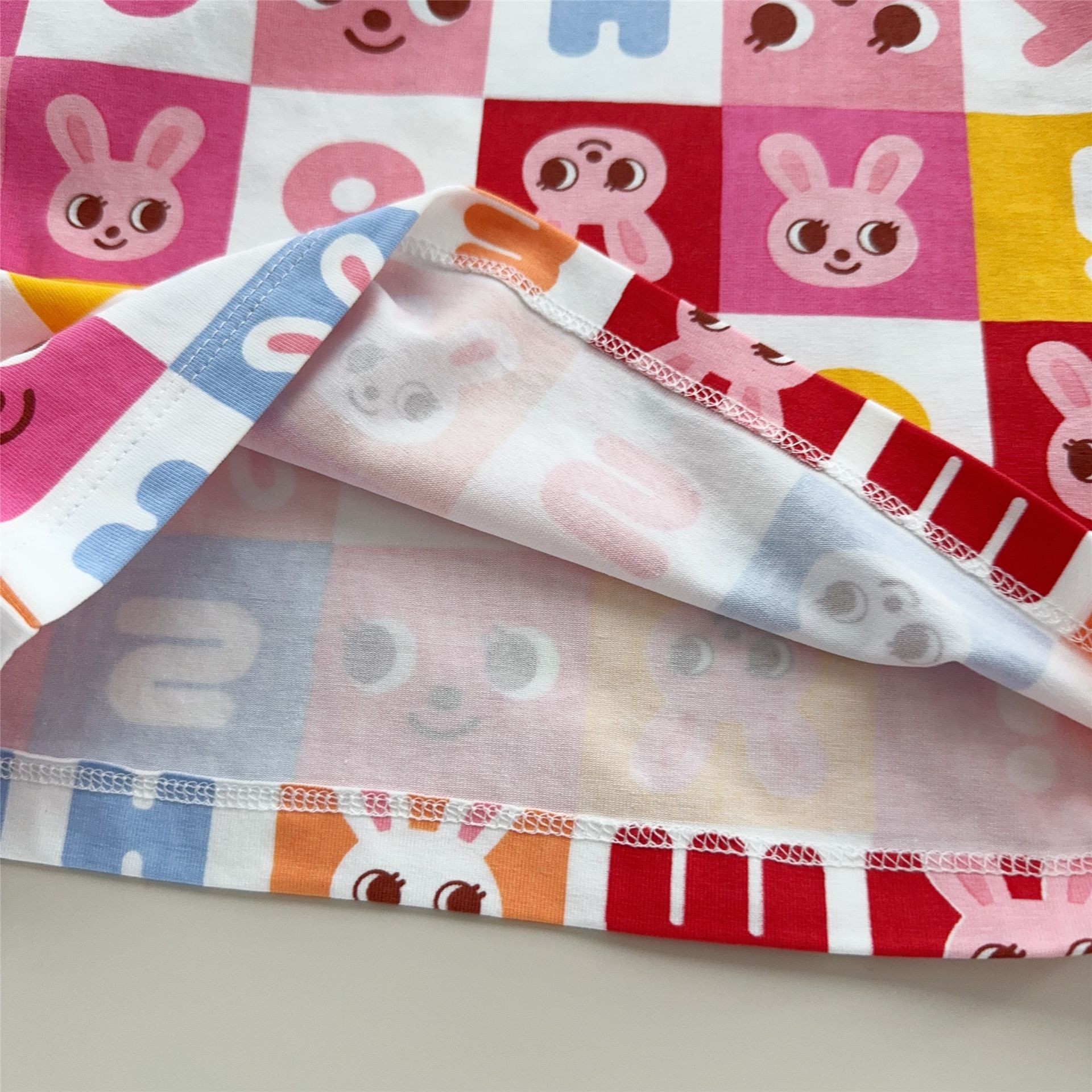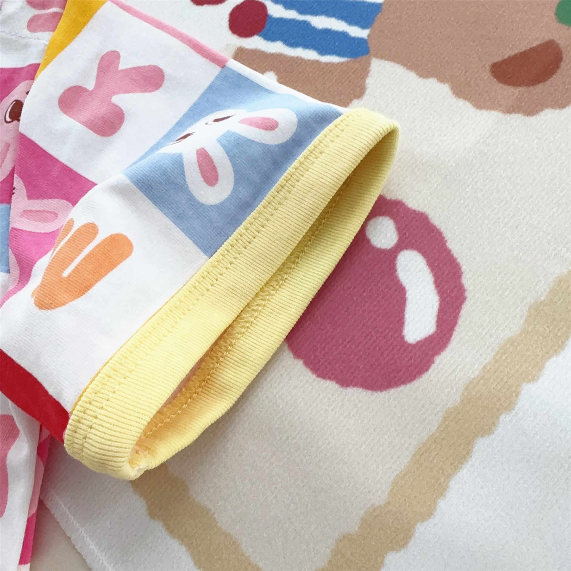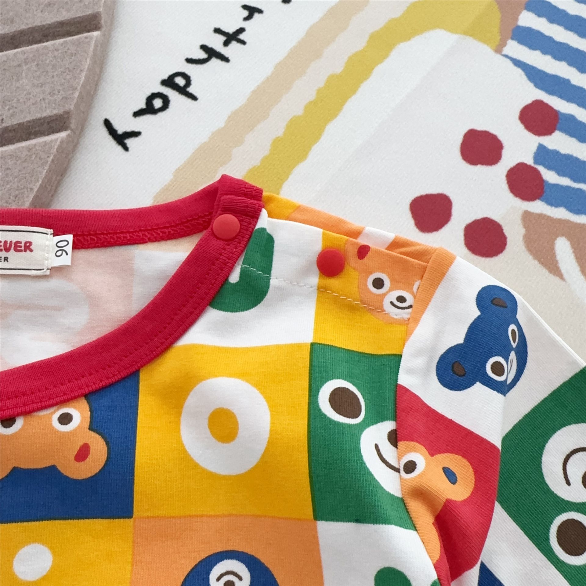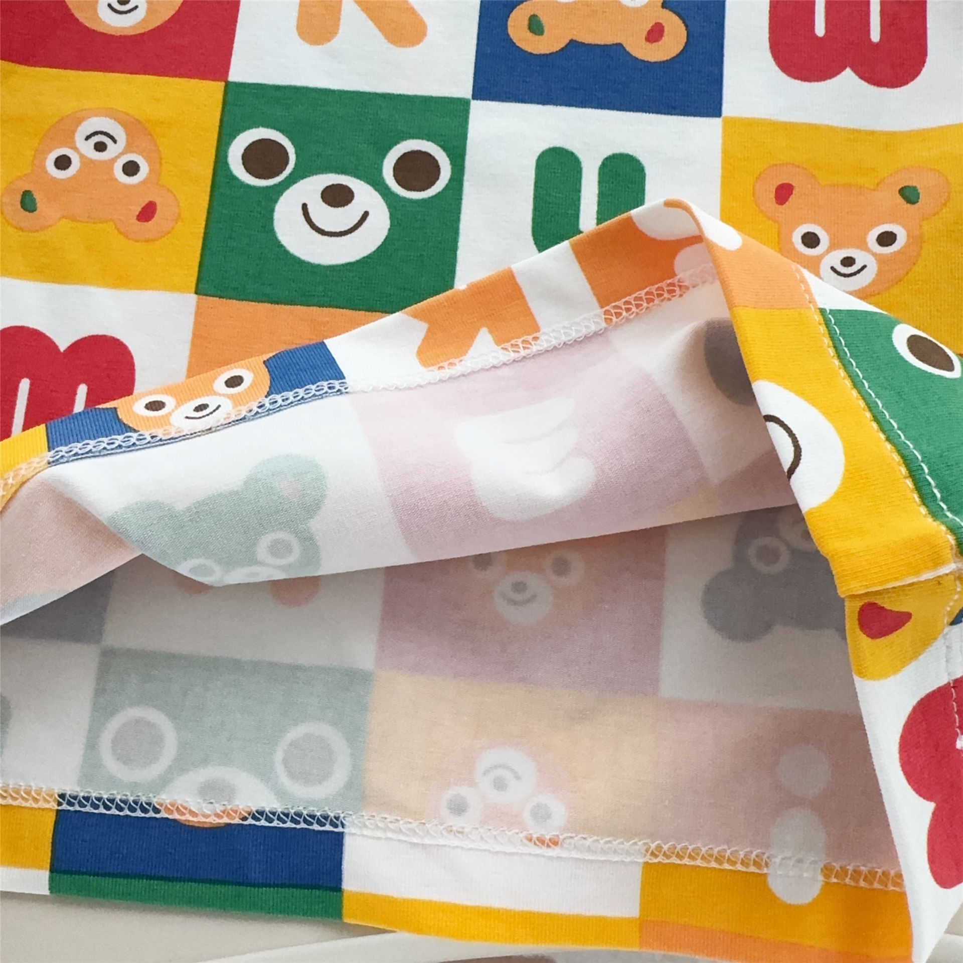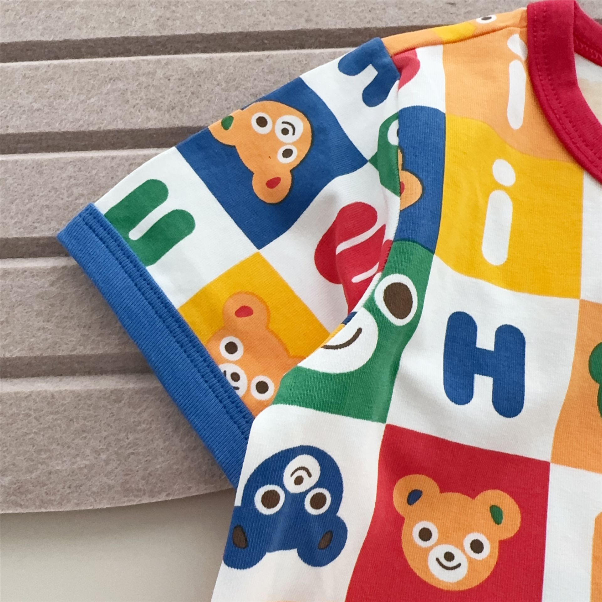 25 여름 새 스타일 일본식 반팔 소년 소녀 전체 인쇄 사각형 곰 머리 인쇄 어린이 반팔 티셔츠 7015