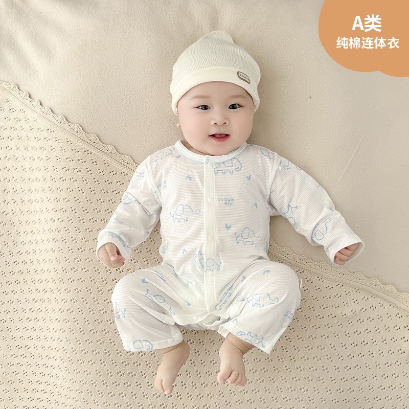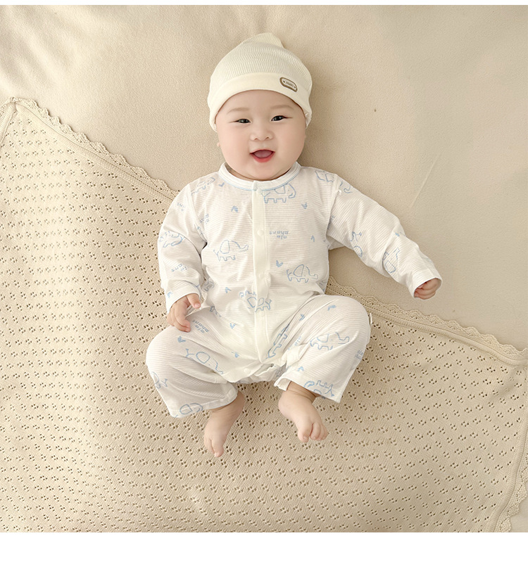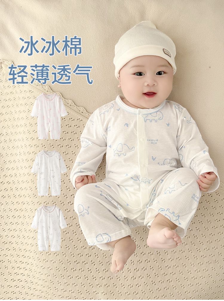 아기 점프 슈트 여름 얇은 순면 긴팔 에어컨 옷 여름 정장 신생아 옷 아기 잠옷스토어 가기