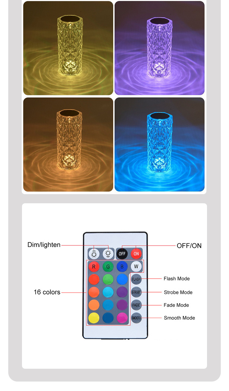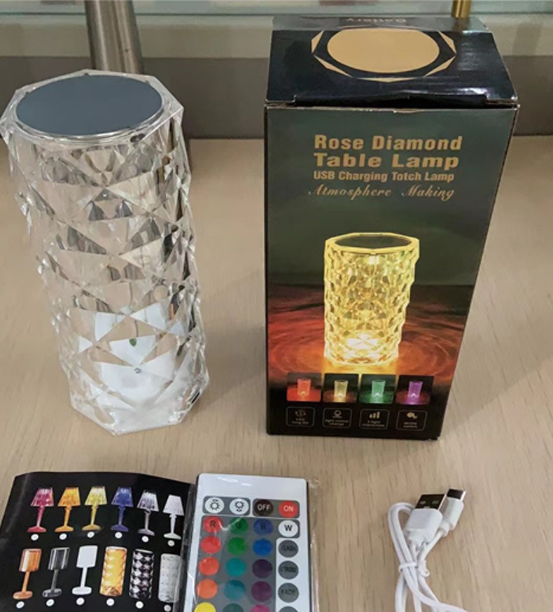 크로스보더 로즈 분위기 조명 충전식 장식 테이블 램프 침실용 야간 조명 충전 및 플러그인 겸용 로맨틱 센서 디밍 가능