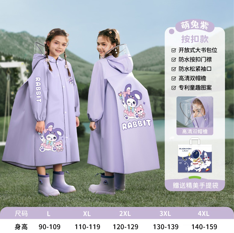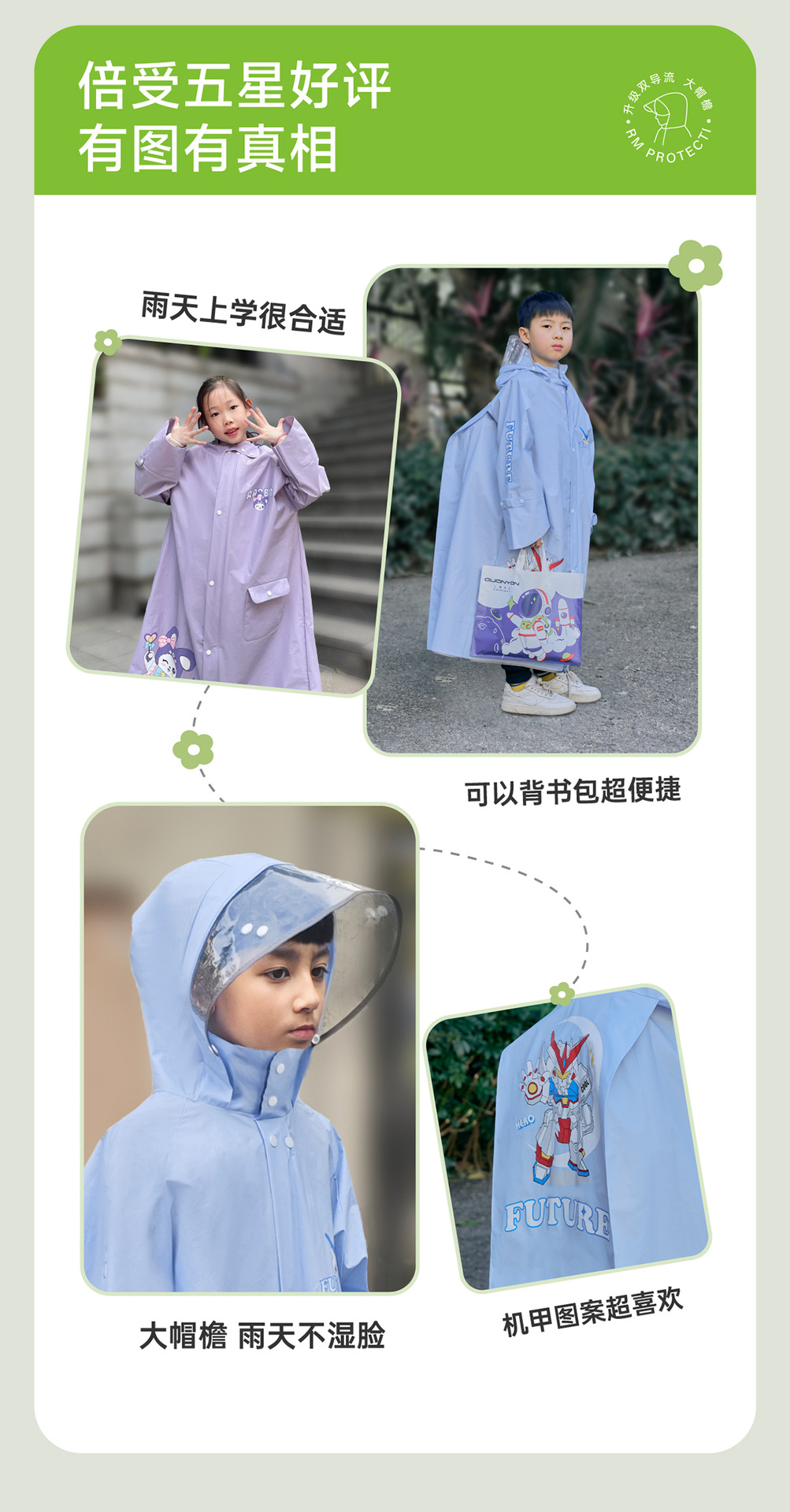 Quanyan 어린이 비옷 소년의 전신 폭풍우 방지 Schoolbag 자전거 판초 통기성 착용 방지 학교 하이킹 비옷