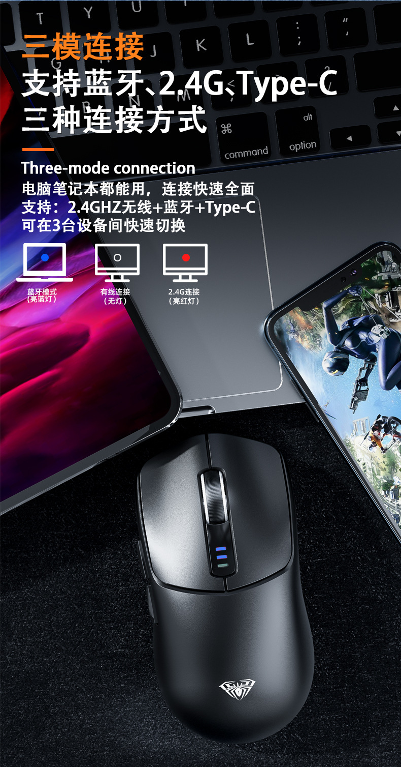 타란툴라 SC580 무선 마우스 블루투스 2.4g 3 모드 유선 E-스포츠 게임 노트북 데스크톱 컴퓨터 사무실스토어 가기
