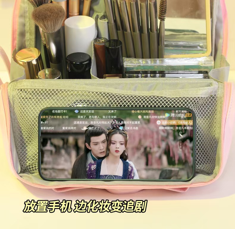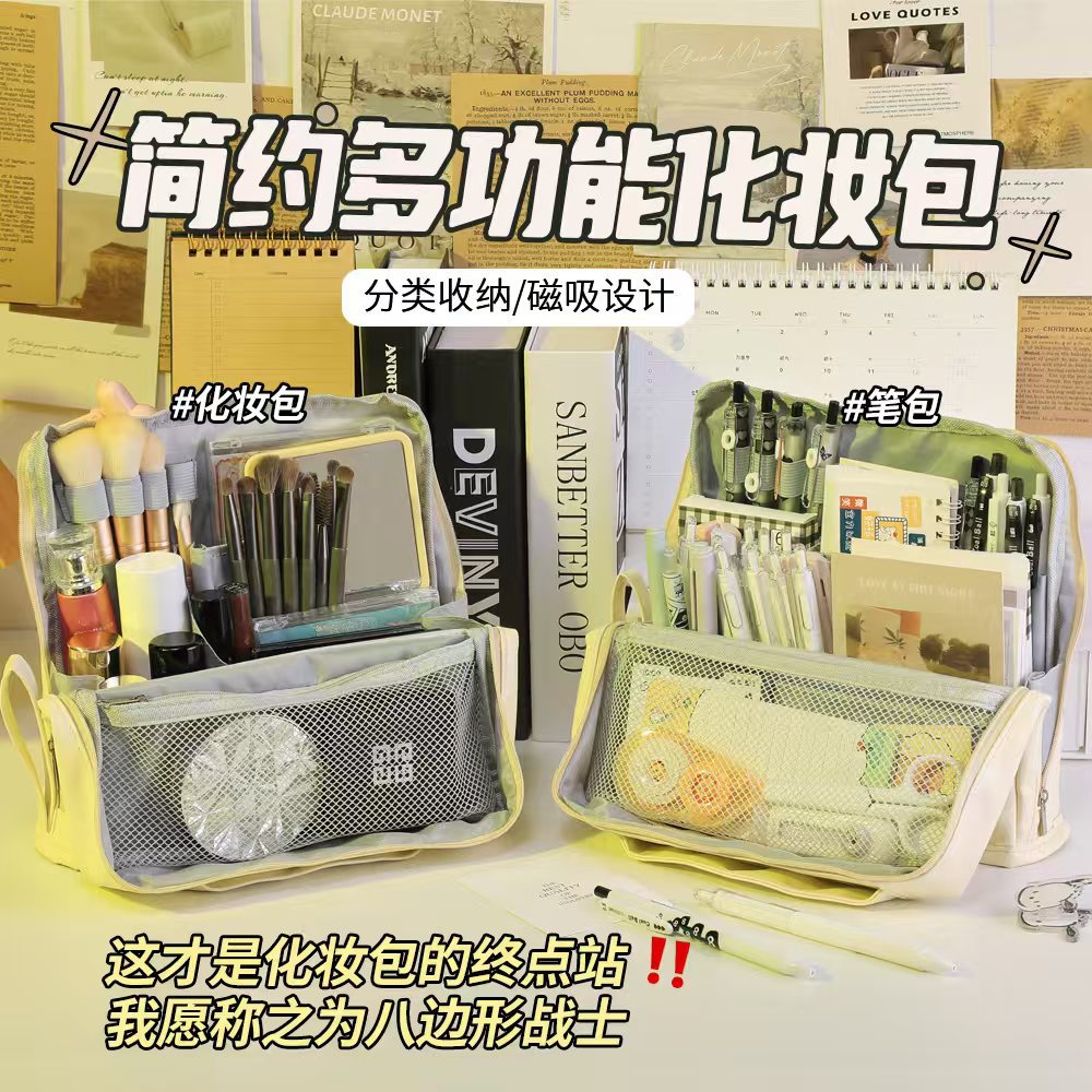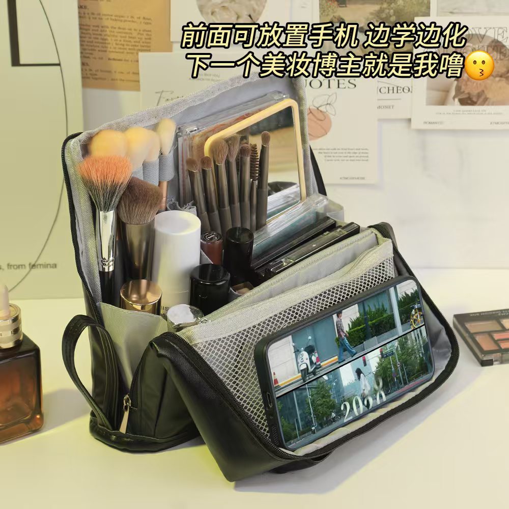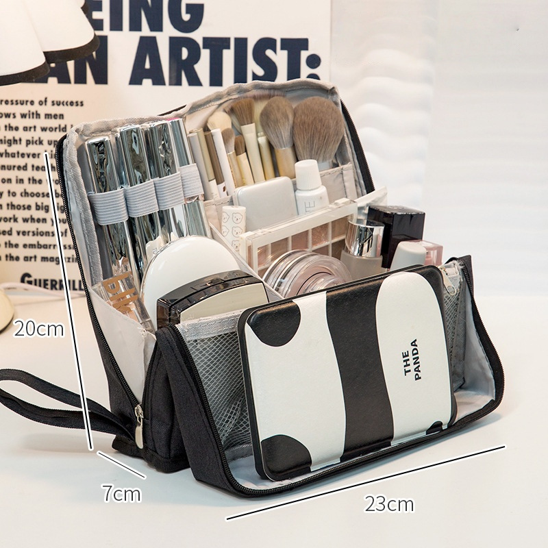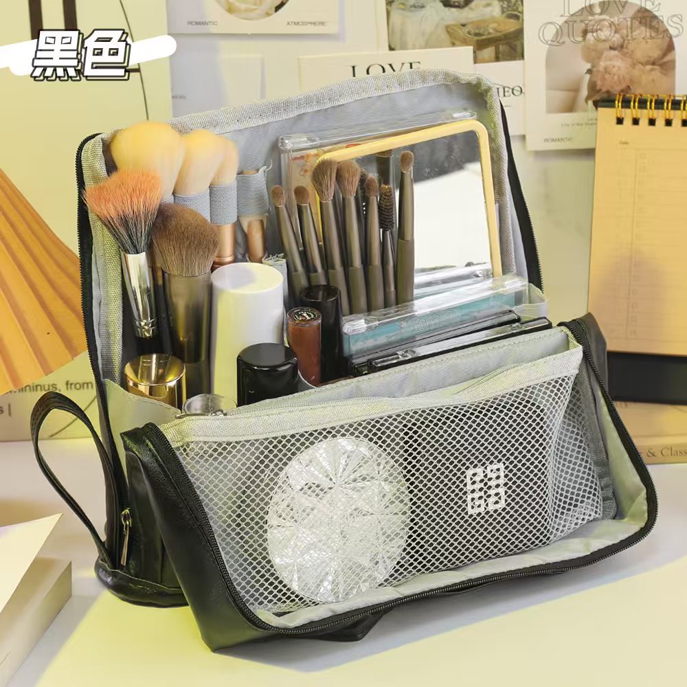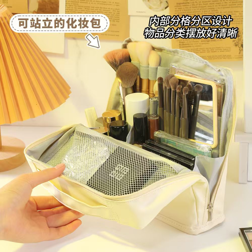 대용량 화장품 가방, 심플하고 멋진 가방, 스탠딩형 대형 필통, 휴대용 다기능 여행 수납 가방