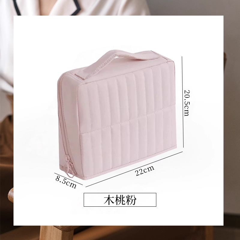 • 신상 세로 스트라이프 스탠드형 화장품 파우치 – 핑크