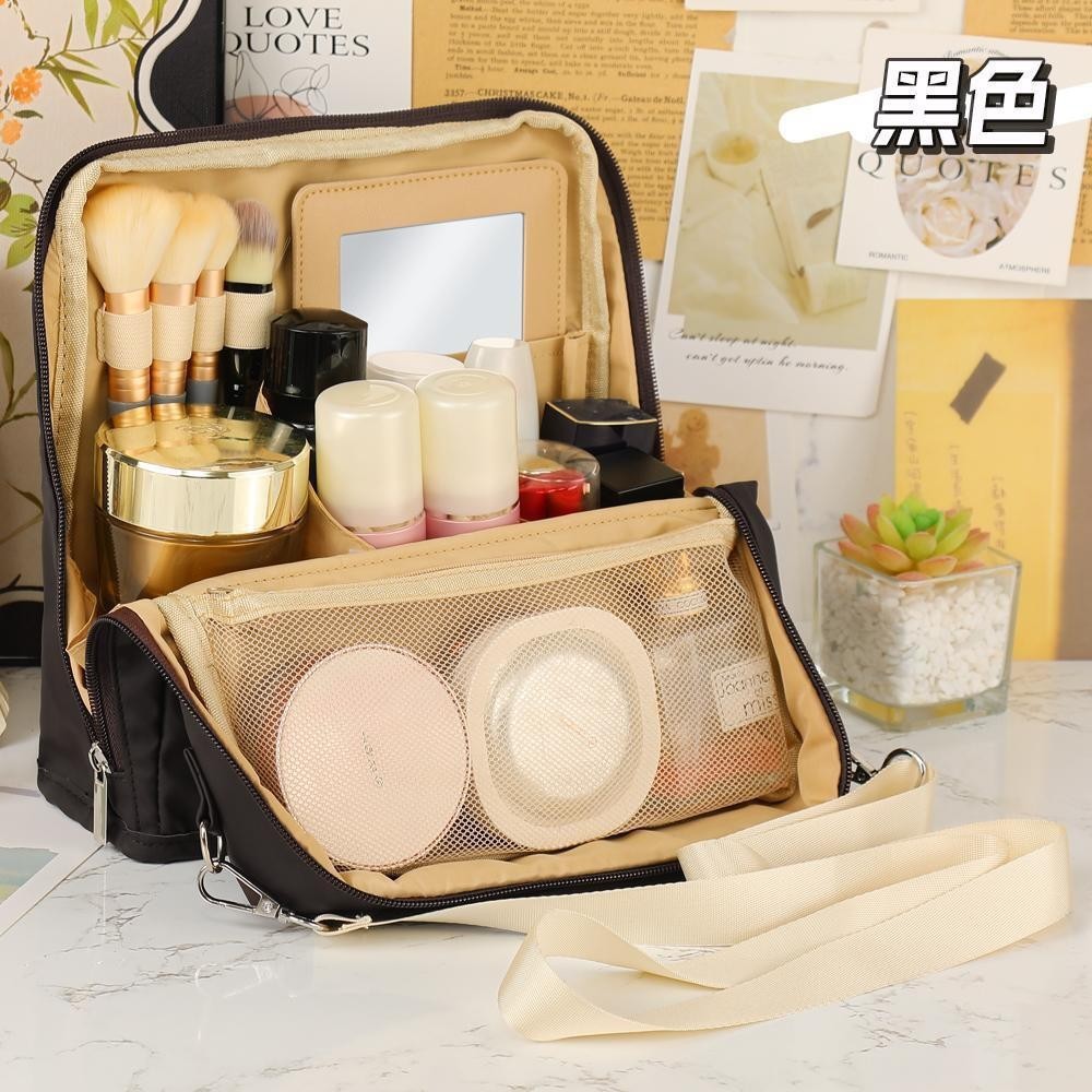 • 거울이 달린 검은색 화장품 가방