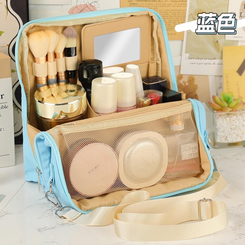 • 거울이 달린 하늘색 화장품 가방