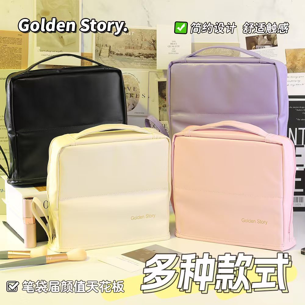 대용량 화장품 가방, 심플하고 멋진 가방, 스탠딩형 대형 필통, 휴대용 다기능 여행 수납 가방스토어 가기