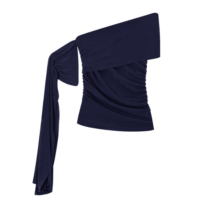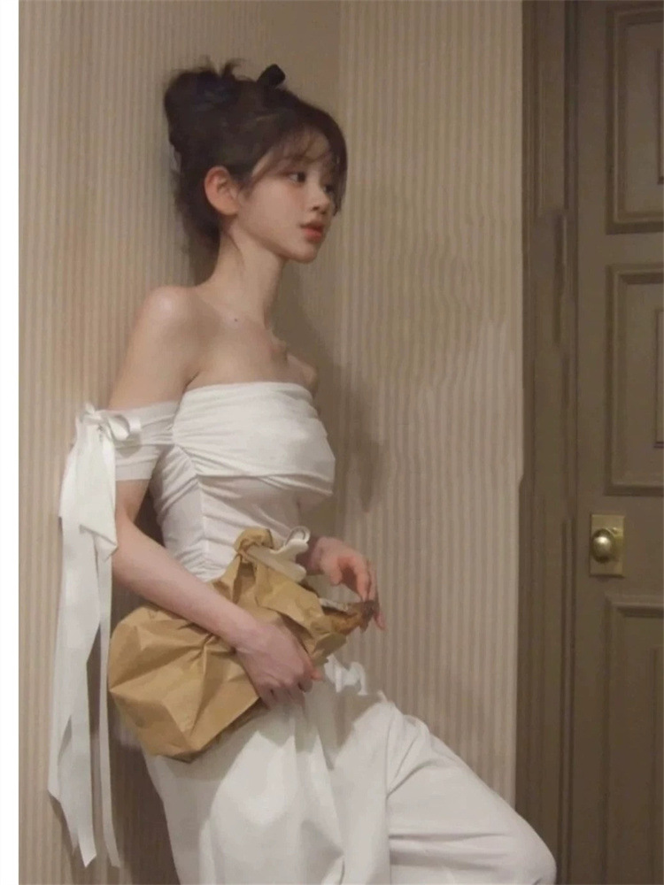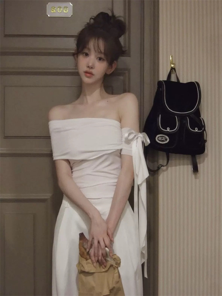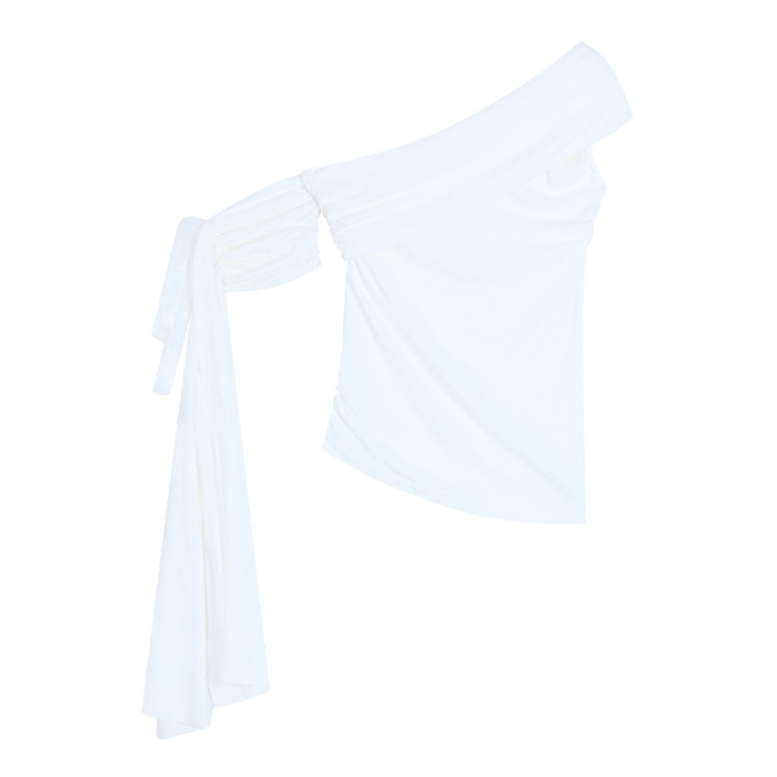 1*1 모달 퓨어 러스 원 숄더 레이스 업 반팔 티셔츠 여성 여름 한국 핫 소녀 슬리밍 오프 숄더 탑