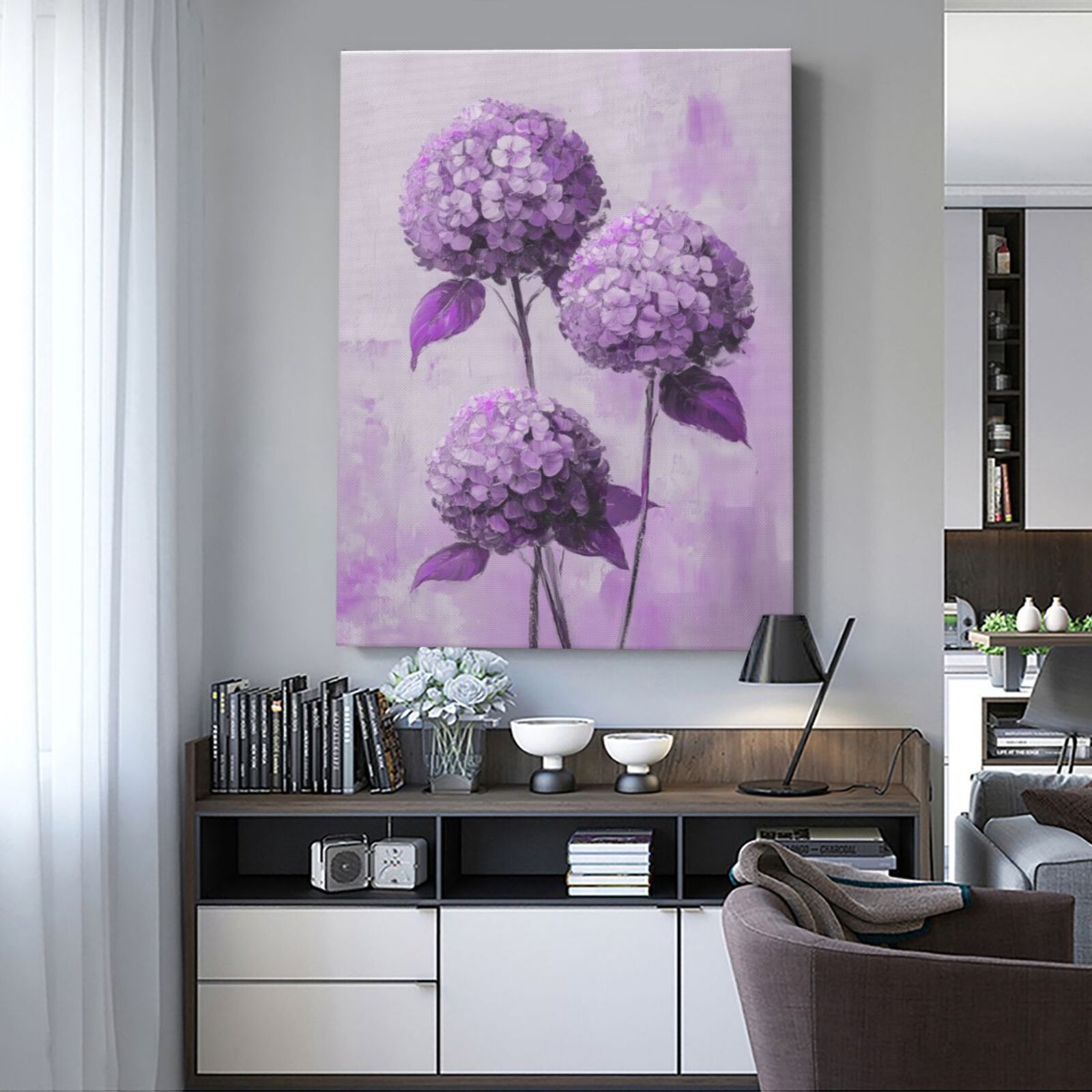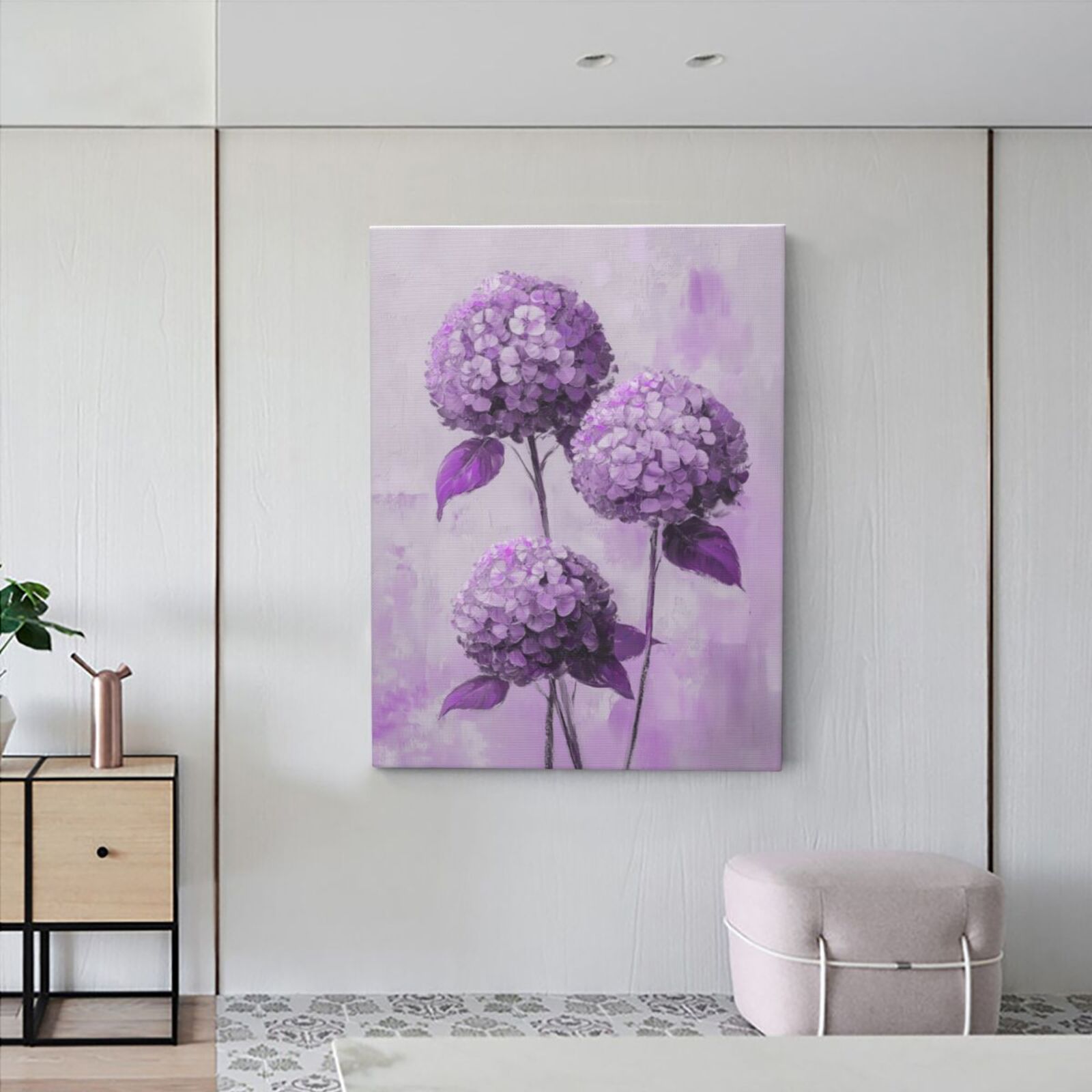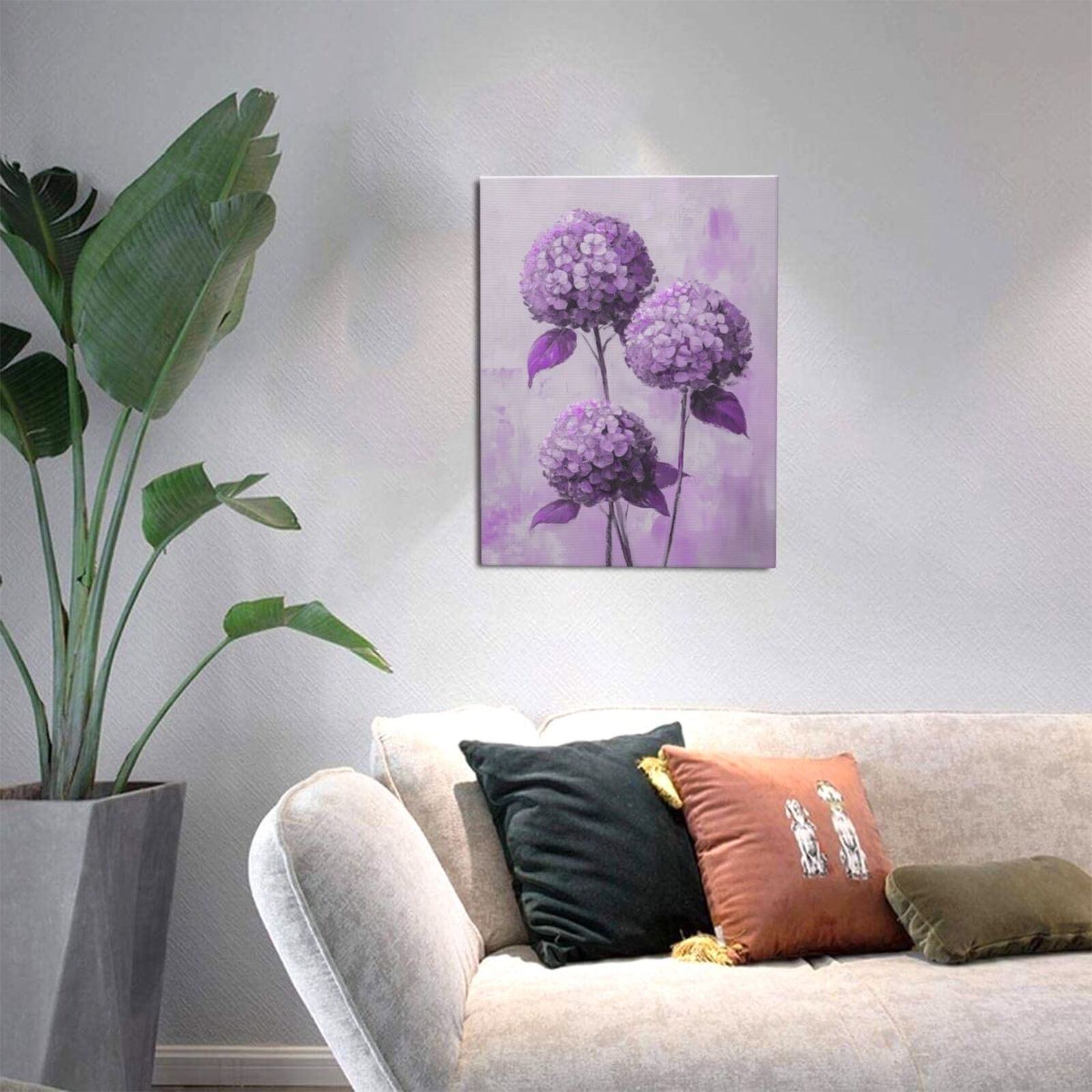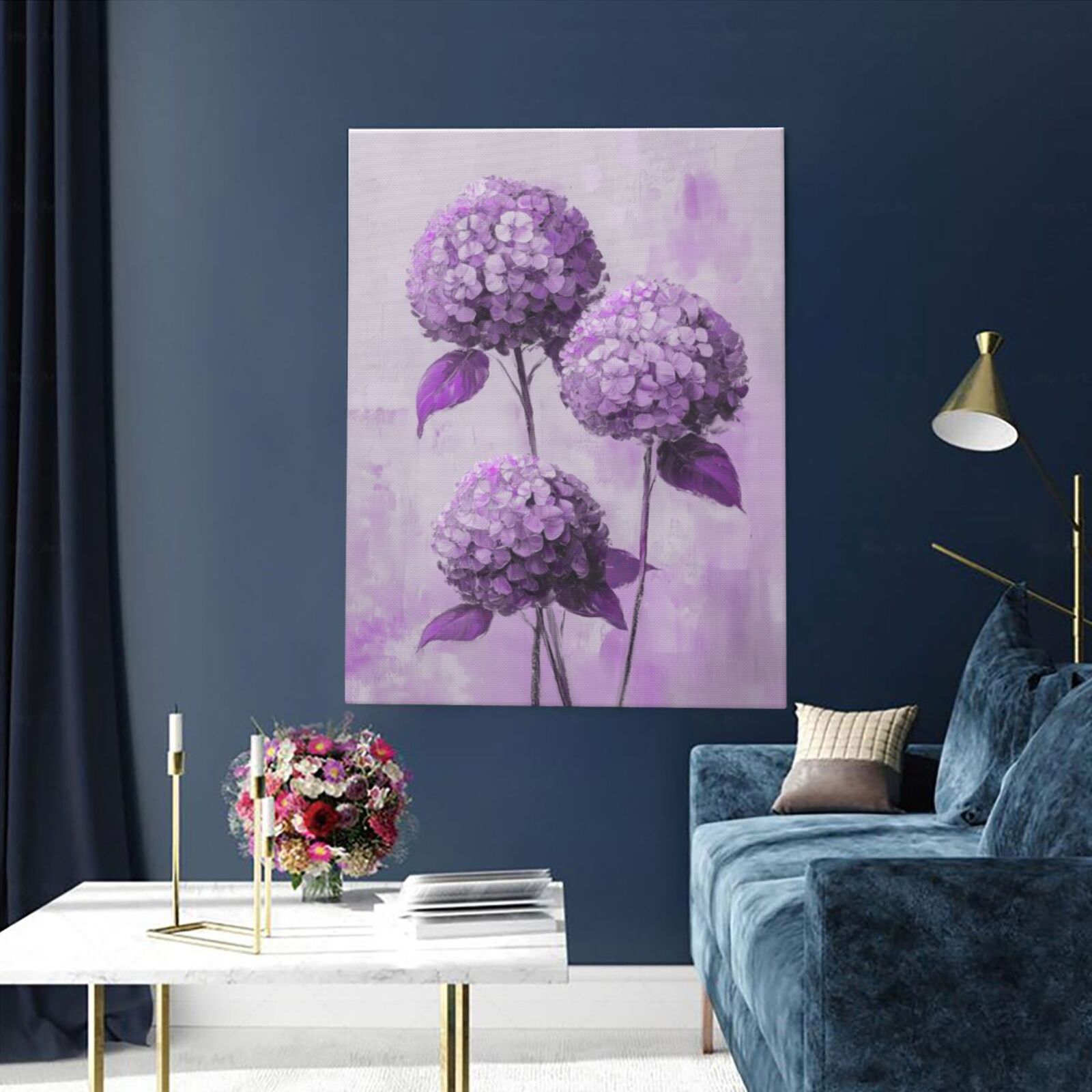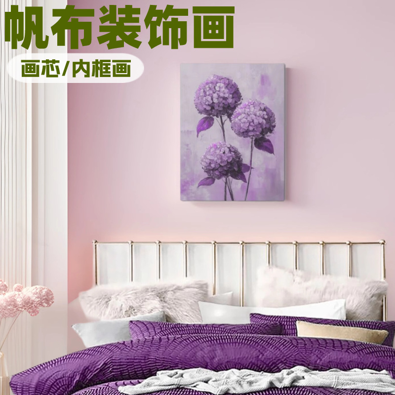 보라색 수국 캔버스 회화 꽃 식물 벽화 HD 장식 그림 크로스 보더 아마존 크리 에이 티브 나무 프레임 교수형 그림스토어 가기