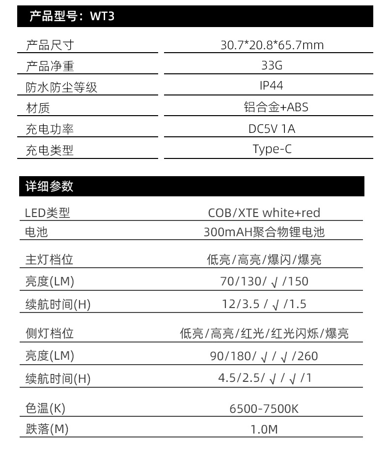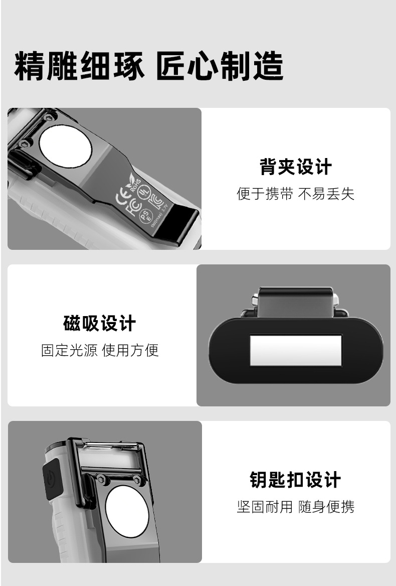 WT3 웨이퍼 비스킷 강력 자석 흡착 전등 야외 캠핑 손전등 자전거 다기능 클립 키체인 라이트