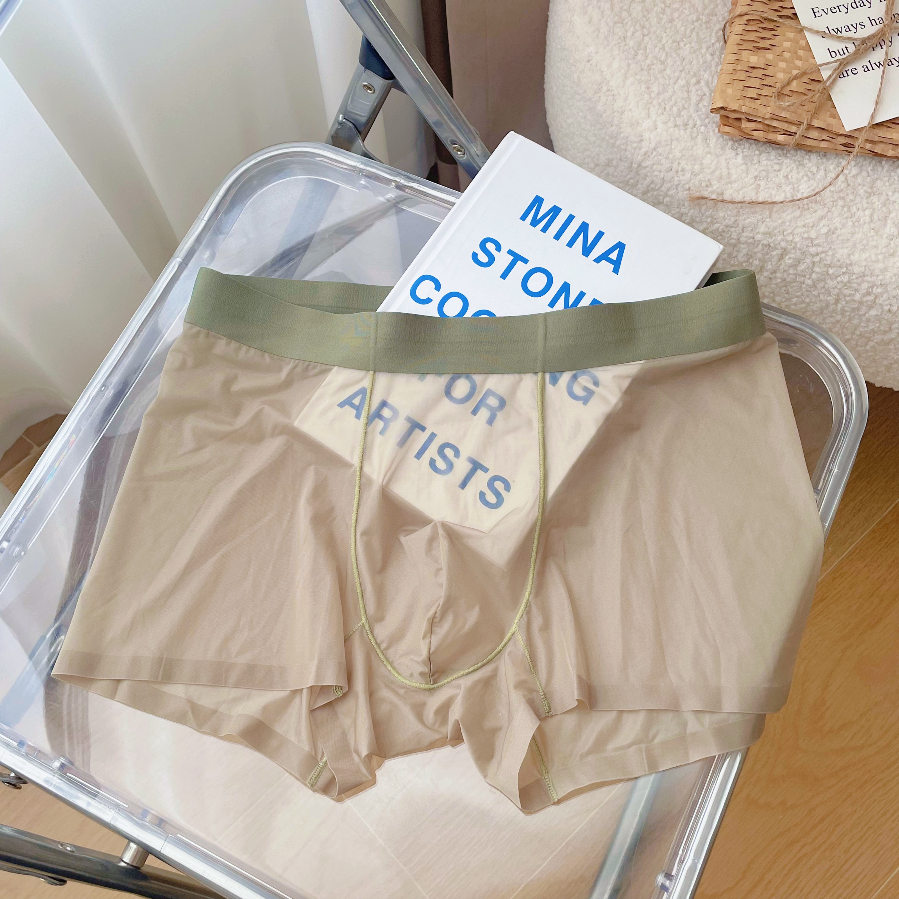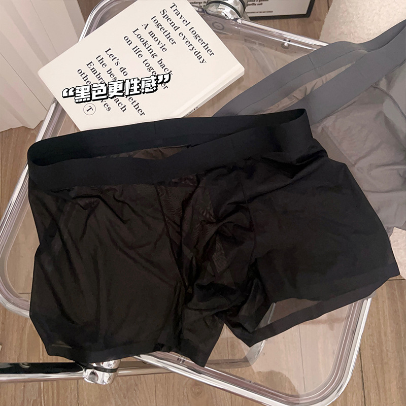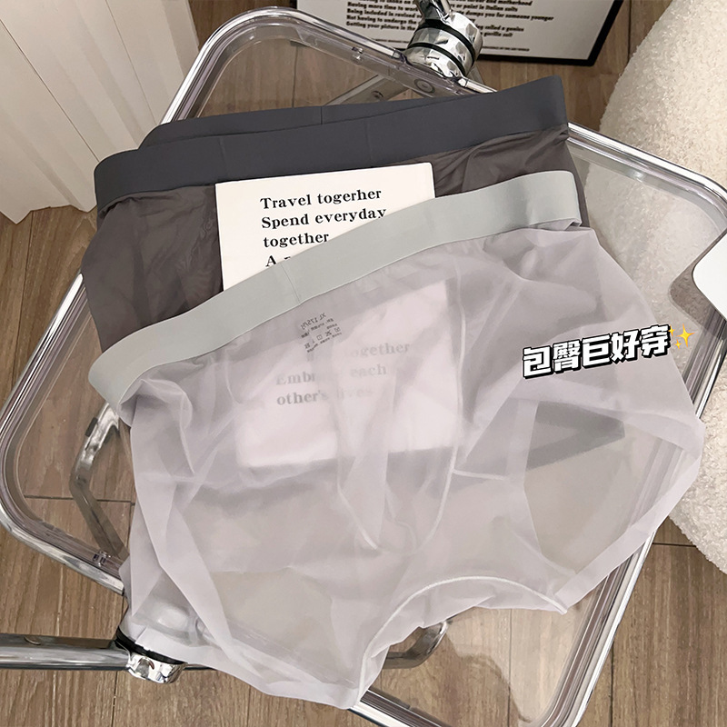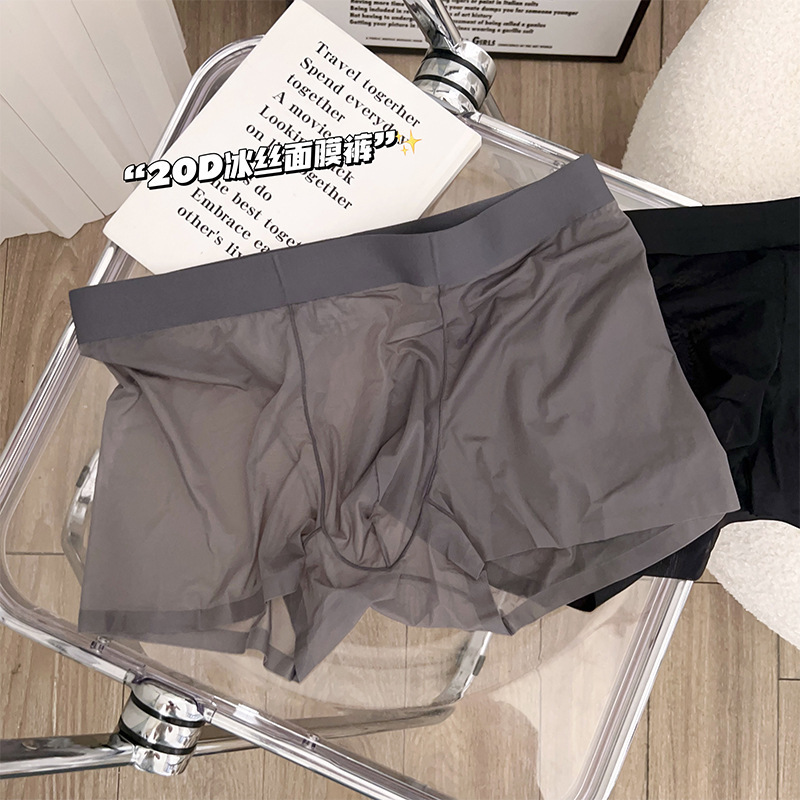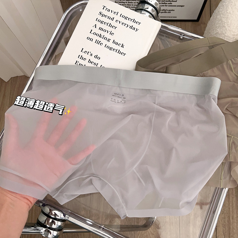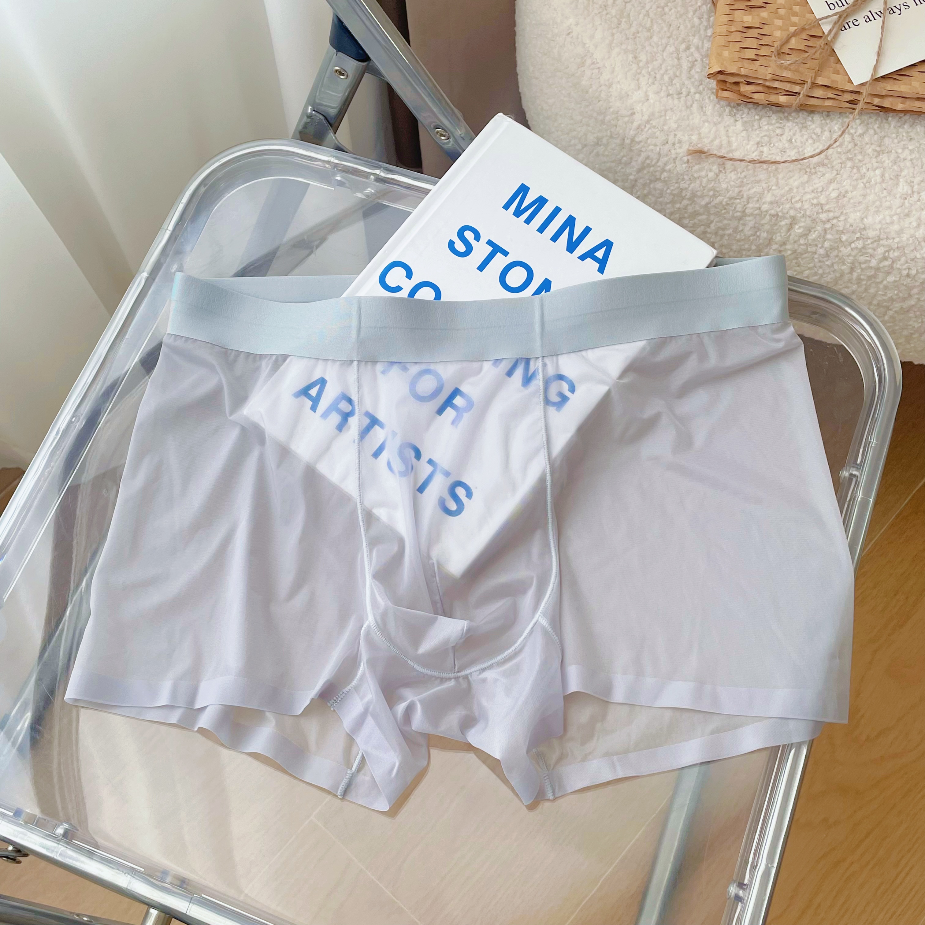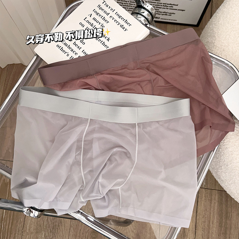 2025 뉴 보이즈 복서 바지 아이스 실크 속옷 남성용 트랙리스 여름 얇은 남성용 풀 투명 복서 바지 쿨 느낌스토어 가기