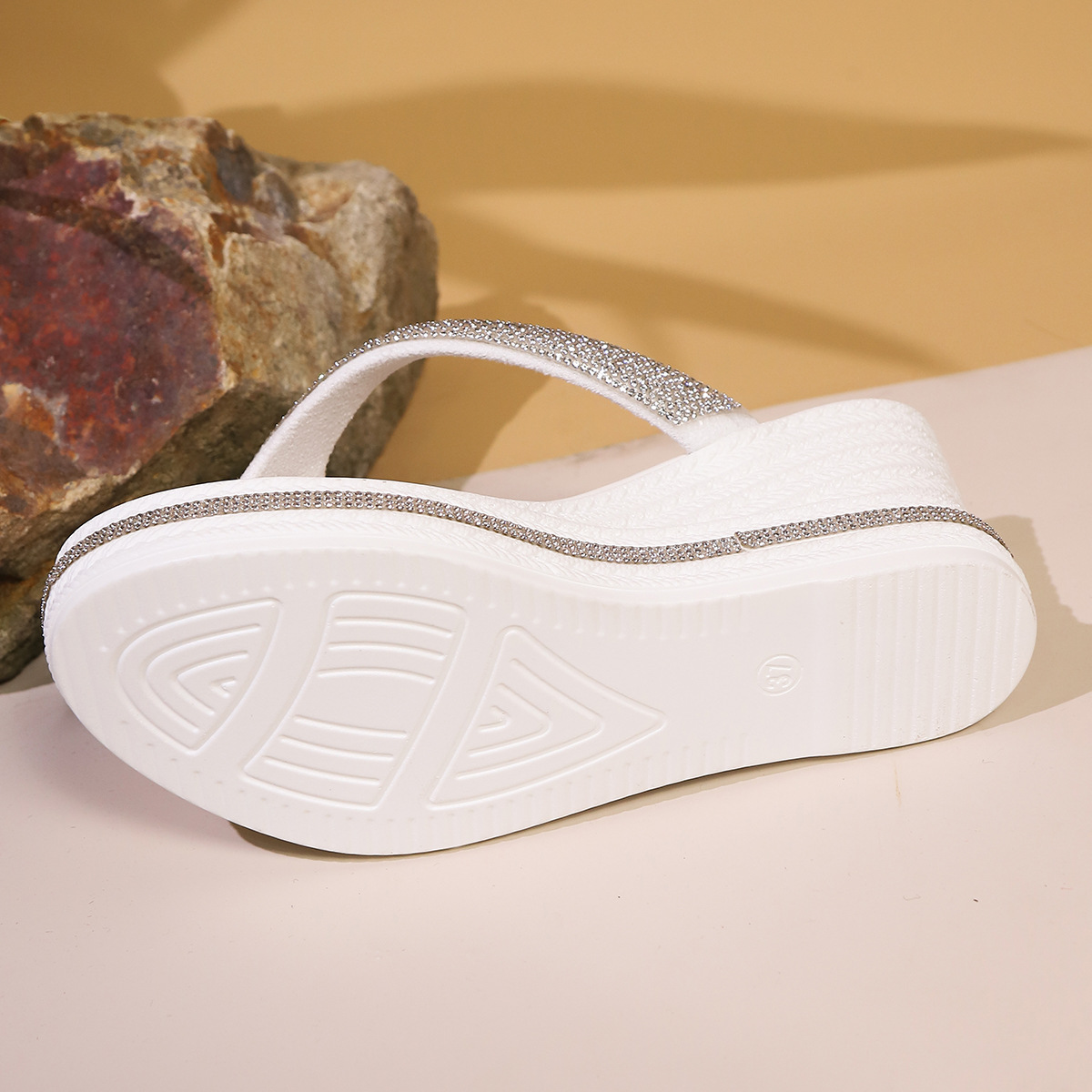 여성 패션 웨지 피곤하지 않은 피트 샌들 라운드 발가락 라인스톤 샌들 2025 뉴 비치 샌들스토어 가기