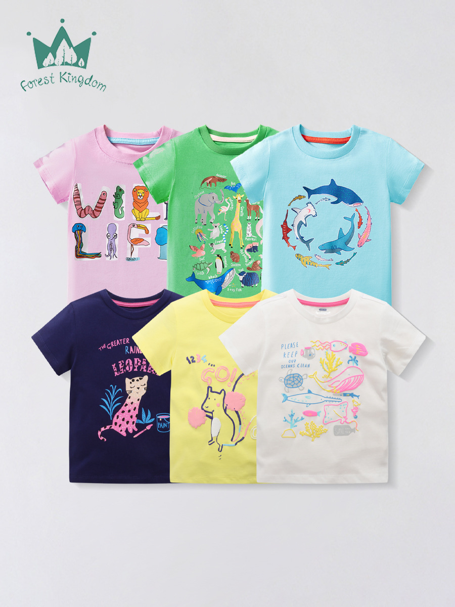 2025 년 여름 소년 소녀를위한 새로운 어린이 반팔 티셔츠 순수 코튼 만화 캐주얼 패션 탑스토어 가기