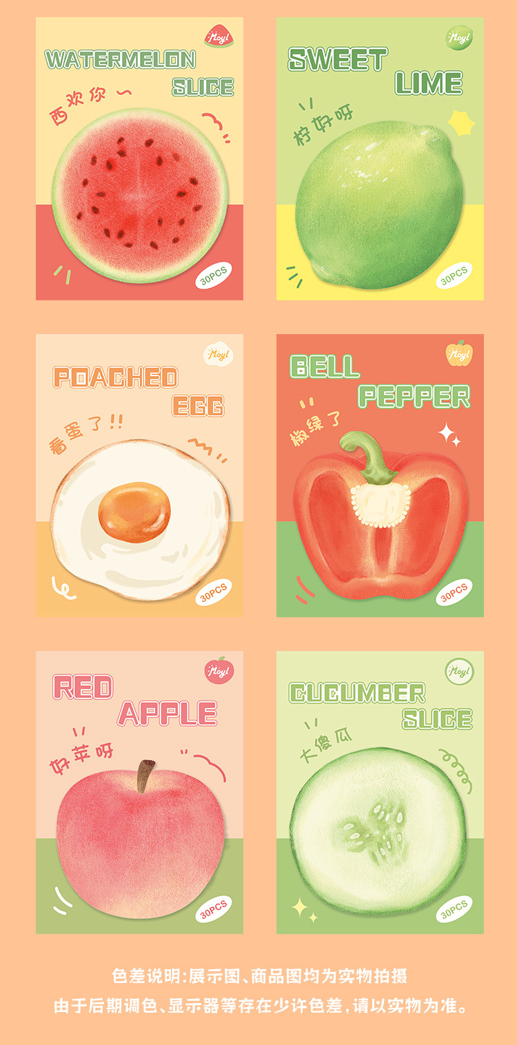 학생들이 메모를 남기기 위한 과일 스티커 메모, N회 스티커, 라벨, 사무실 메모 용지, 장식 재료