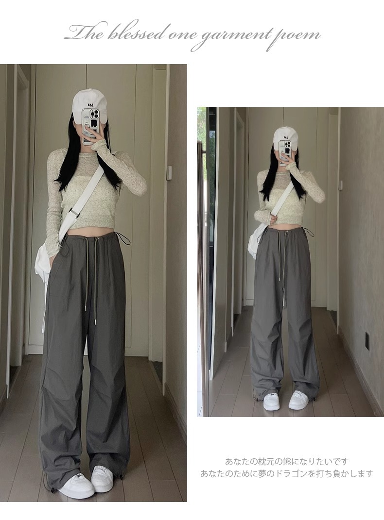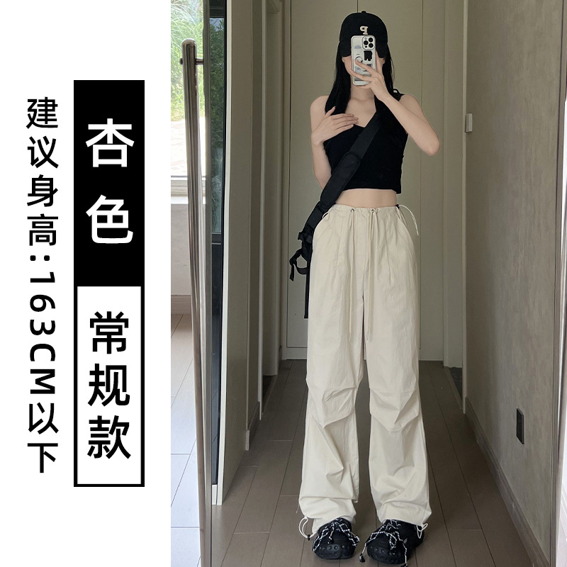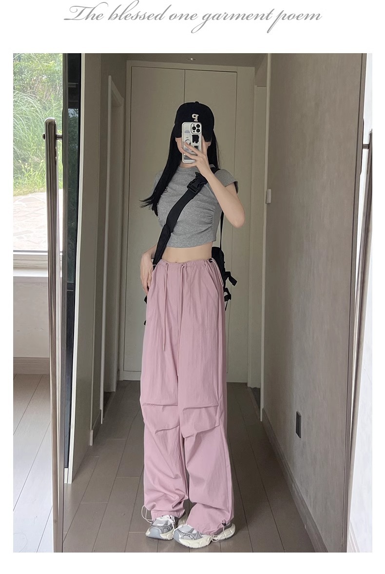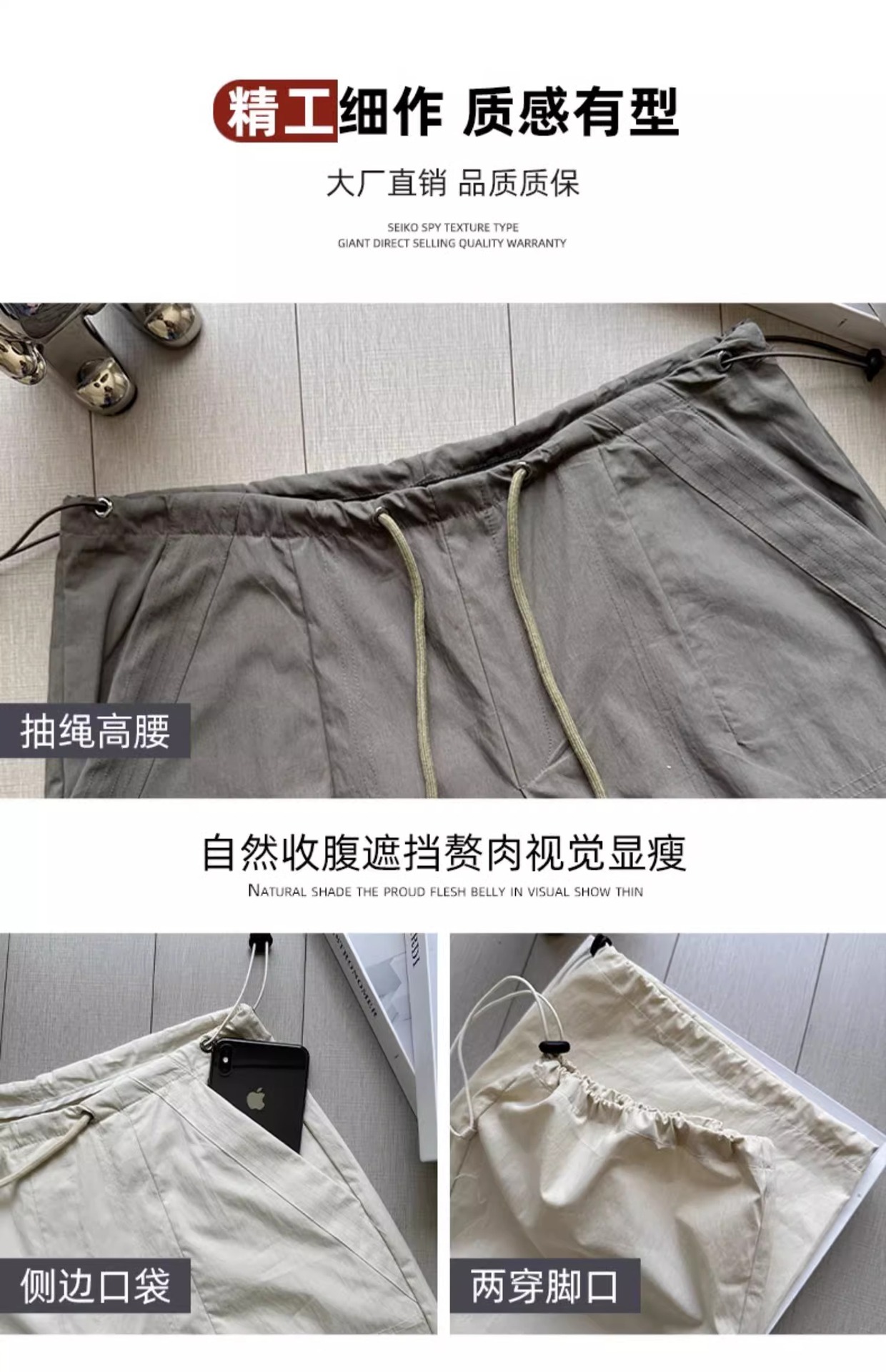 아메리칸 레트로 오버홀 여자 여름 높은 허리 넓은 다리 캐주얼 느슨한 슬리밍 카키 빠른 건조 슬리밍 스포츠 바지스토어 가기